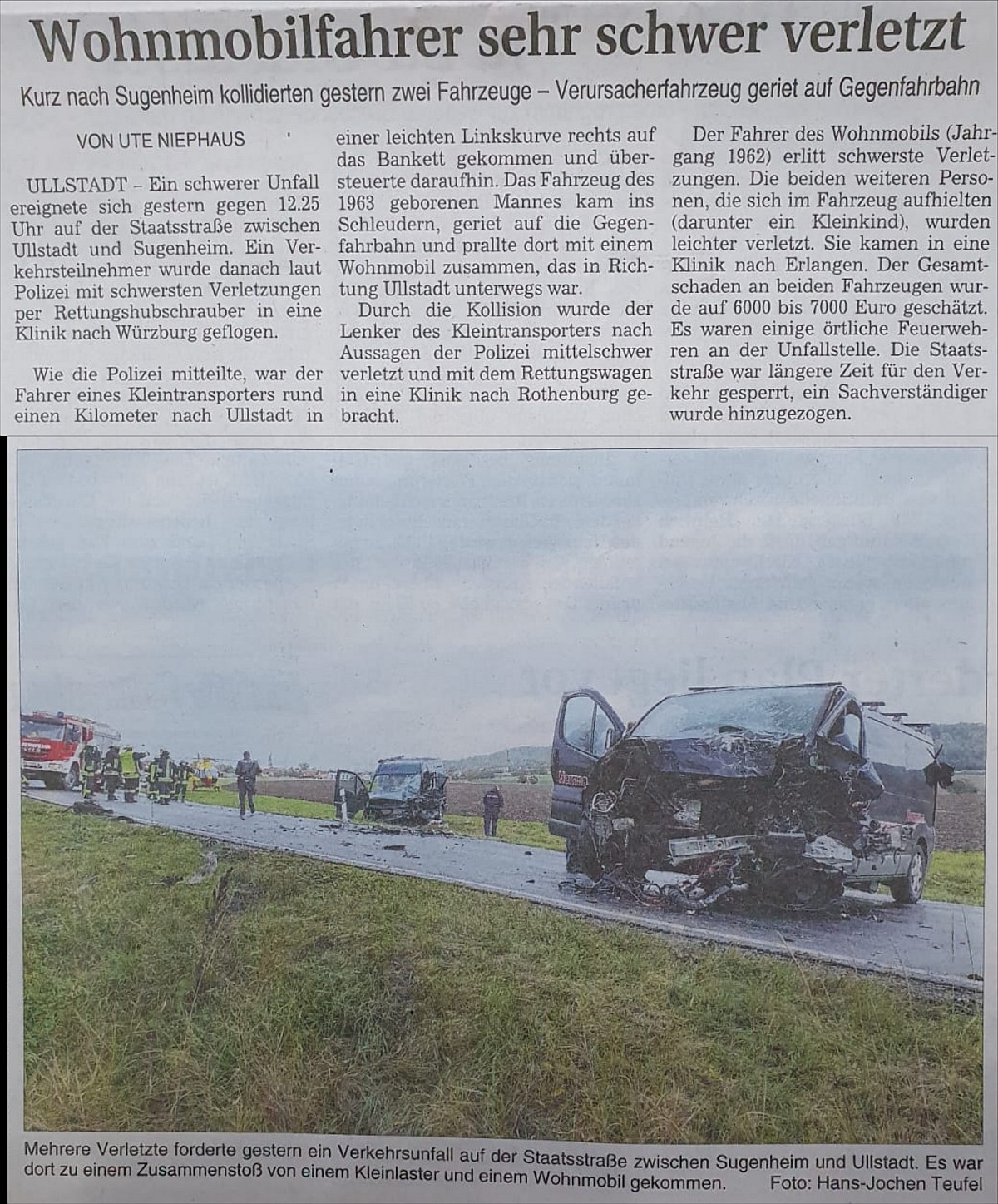 zwischen Ullstadt und Sugenheim. Personen eingeklemmt.