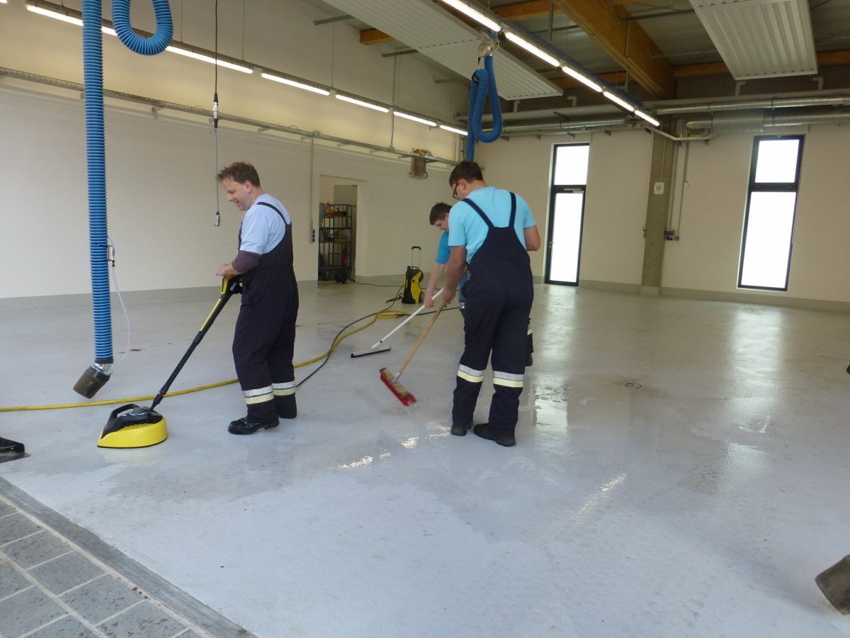 Regelmäßiger Fahrzeug-Check, Autos waschen, Fahrzeughalle reinigen