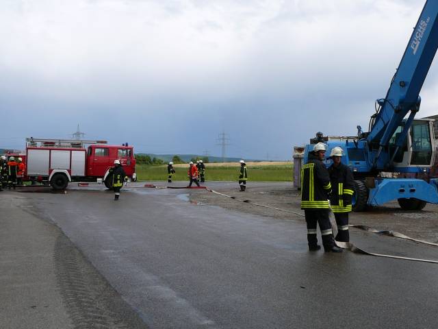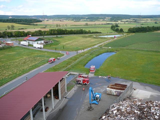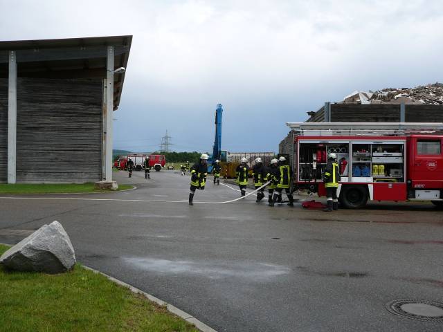 Großübung auf dem Gelände der Altholzaufbereitung in Markt Bibart am 16.6.2007