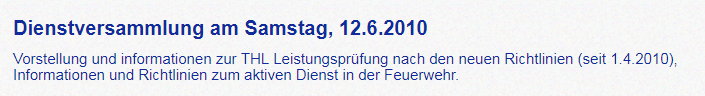 Vorstellung und informationen zur THL Leistungsprüfung nach den neuen Richtlinien (seit 1.4.2010),Informationen und Richtlinien zum aktiven Dienst in der Feuerwehr.