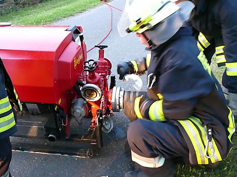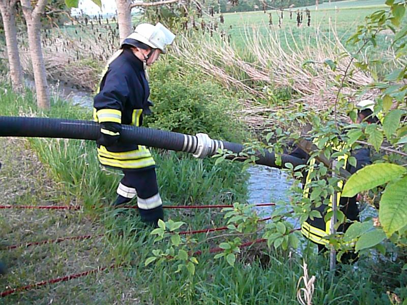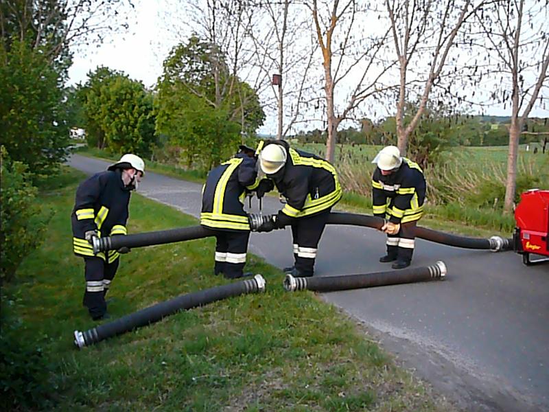 Wasserförderung über lange Schlauchstrecken13.5.2011 - Wasserentnahme aus dem Bach20.5.2011 - Wasserentnahme aus Hydrant