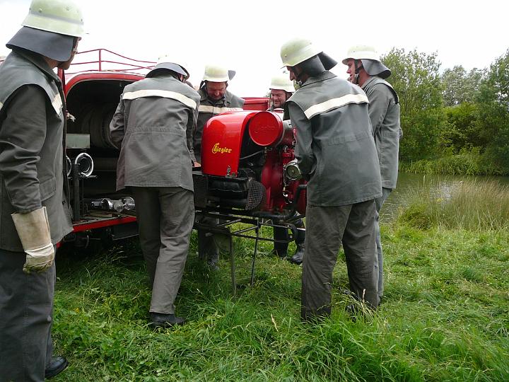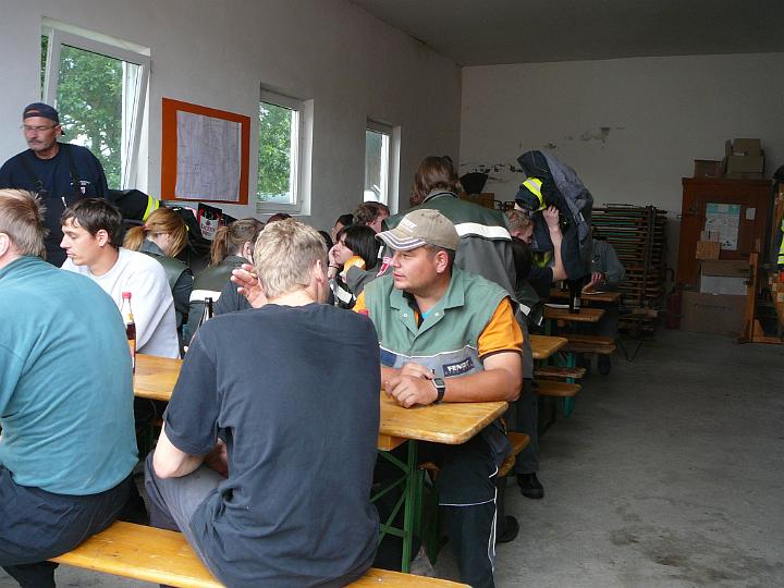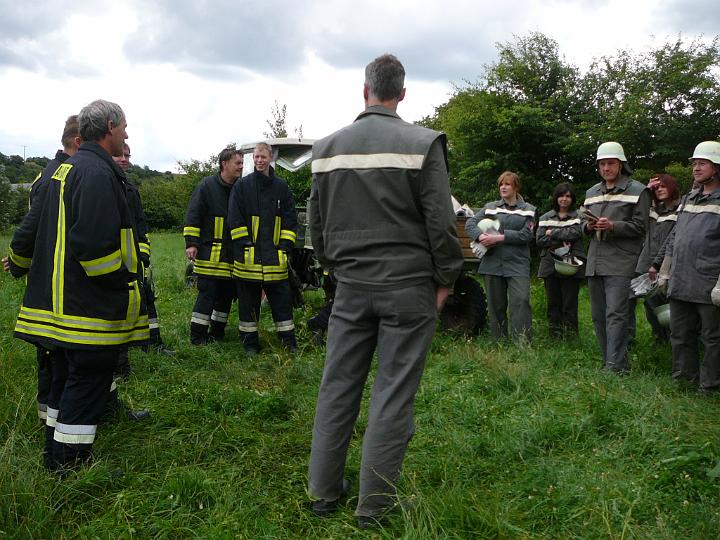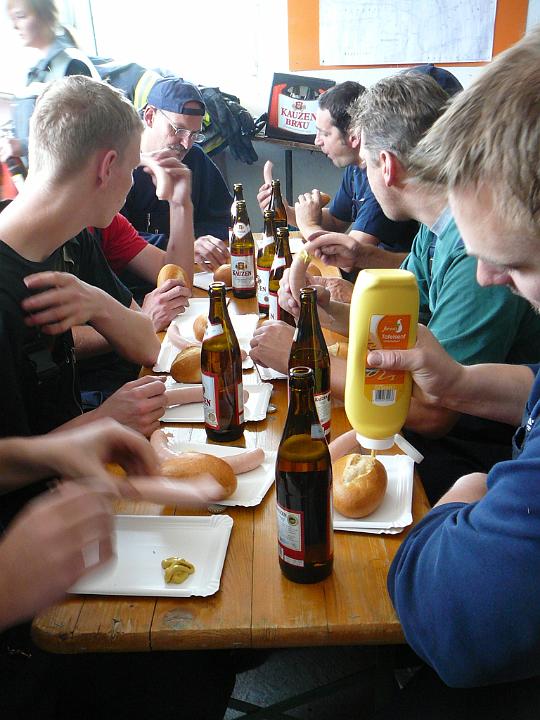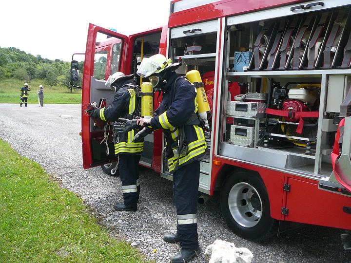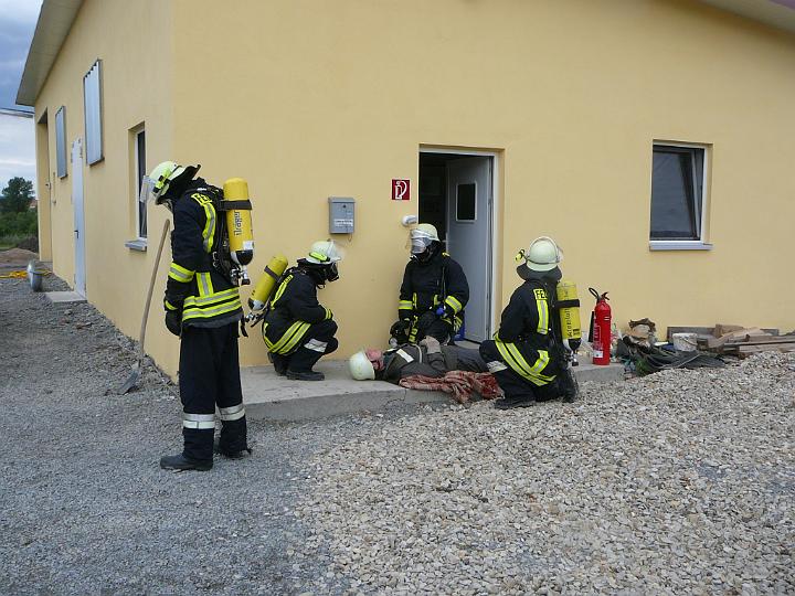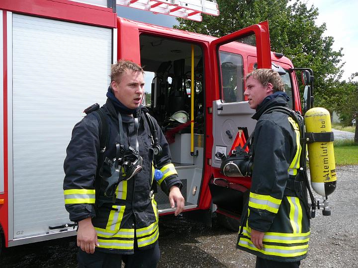 Bedingt durch die Personensuche unter schwerem Atemschutz wurde während des Löschangriffs die Mannschaft des LF10 mit Kameraden der FF Krautostheim ergänzt.