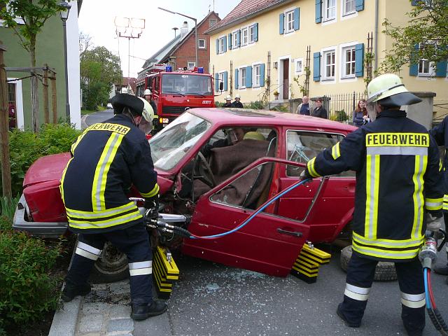 Verkehrsunfall mit eingeklemmter Person (nachts) ...