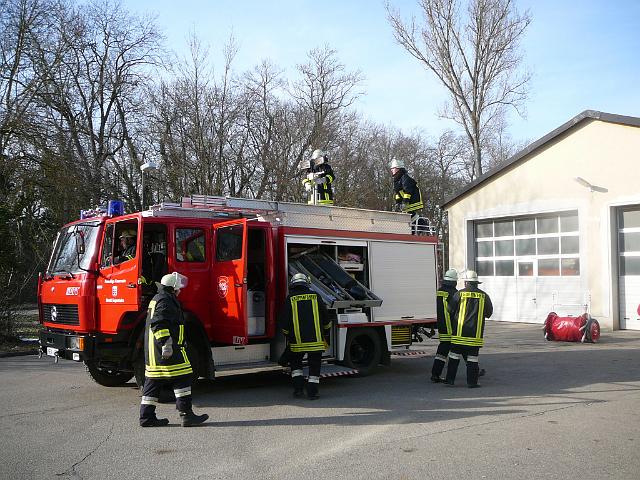 Brand - Löschaufbau (LF 10) bei angenommener Dunkelheit.