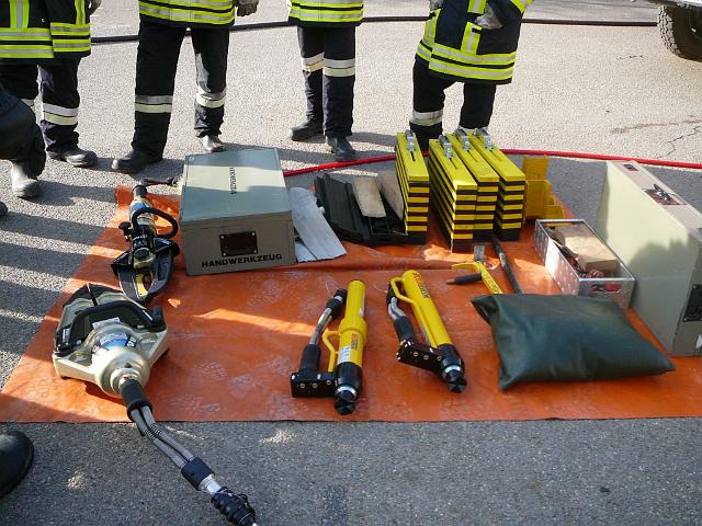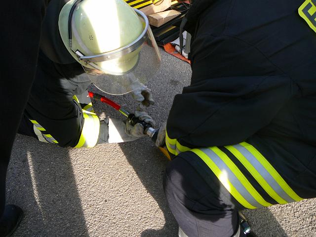 THL - Angenommener Verkehrsunfall bei Dunkelheit - Verkehrsabsicherung und Arbeitsweise am Einsatzort (LF16), üben mit dem neuen Rettungssatz.