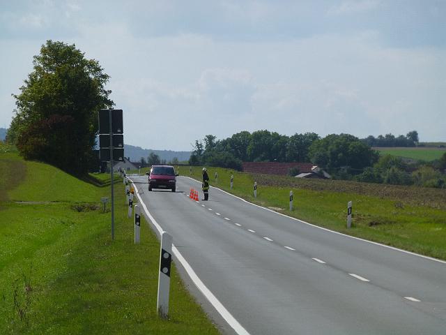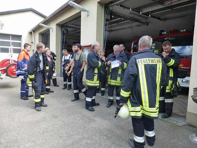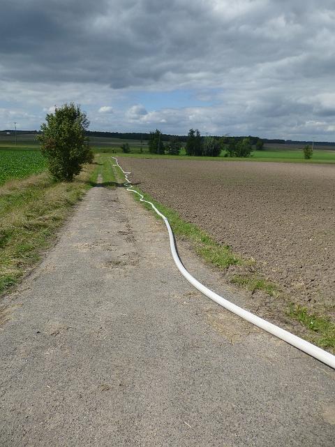 zusammen mit der FF Deutenheim Löschaufbau, Wasserförderung über lange Strecken. Getestet wurde auch die zusätzliche Wasserförderung über den Faltbehälter, der aus Güllefässern befüllt wurde.