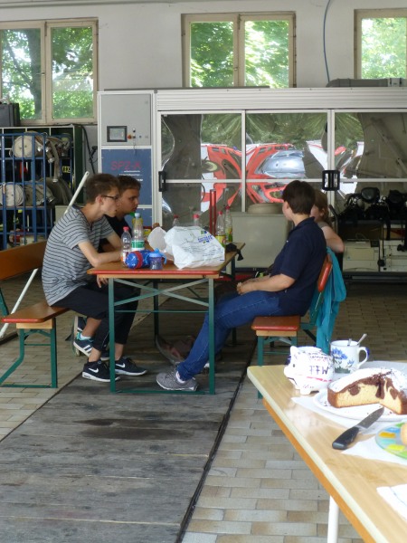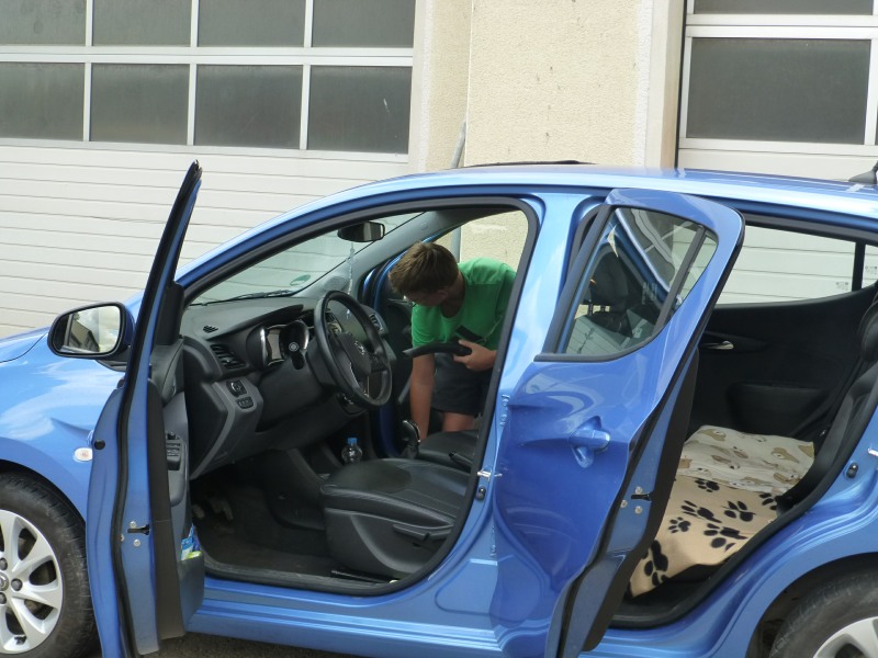 Der Lack wurde sorgfältig gereinigt, hartnäckige Insekten schonend entfernt, Felgen auf Hochglanz gebracht. Danach ging es zur gründlichen Innenreinigung in die Fahrzeughalle. Die Wartezeit konnte man sich mit kalten Getränken, Kaffee und selbst gemachtem Kuchen versüßen.