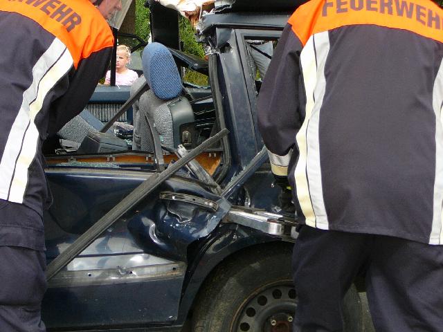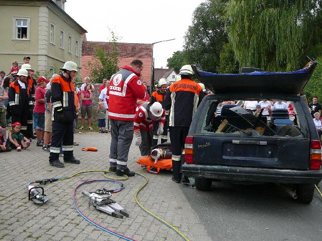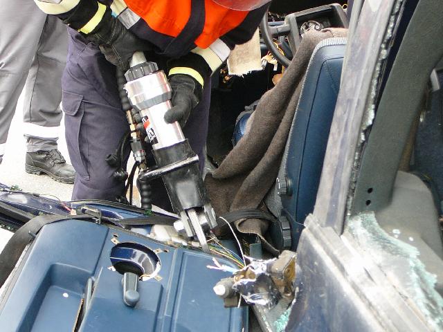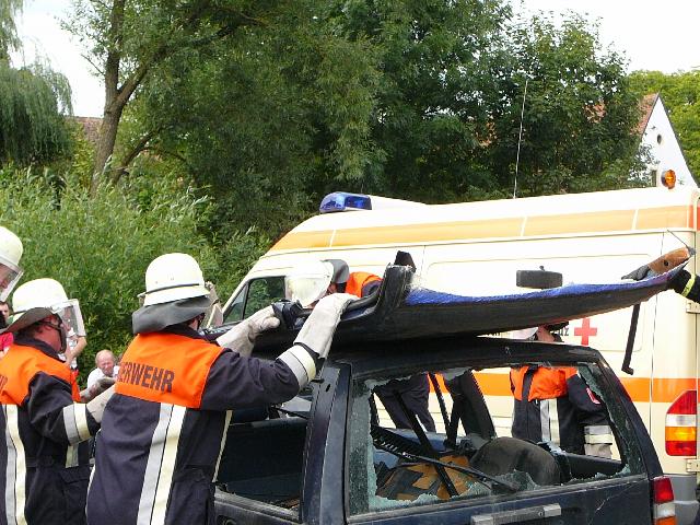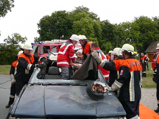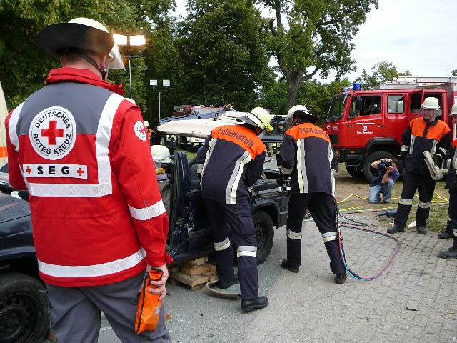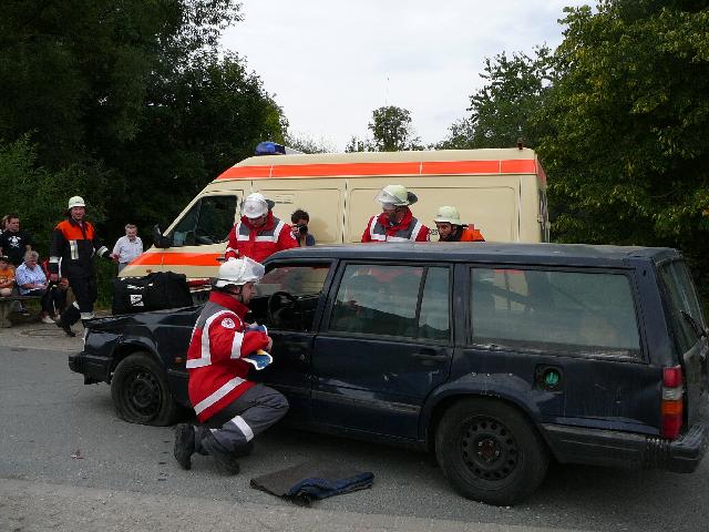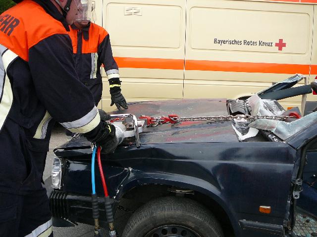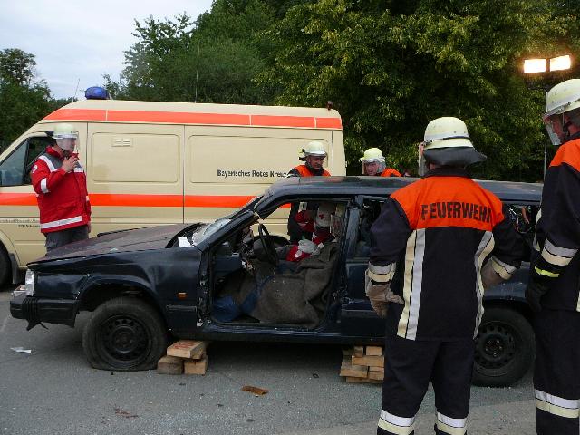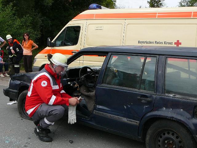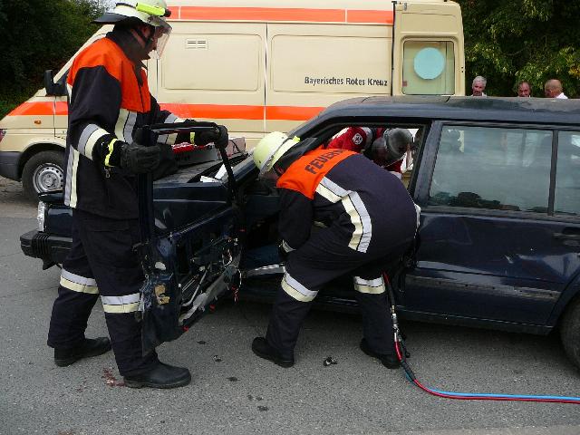 Verkehrsunfall, 2 verletzte Personen, eine Person eingeklemmtEinsatzkräfte: Freiwillige Feuerwehr Markt Sugenheim, Freiwillige Feuerwehr Langenfeld, Schnelle Einsatzgruppe Rotes Kreuz (SEG)