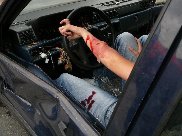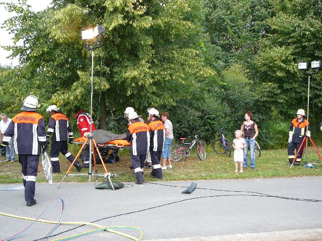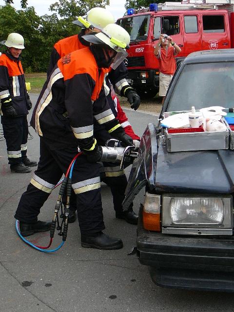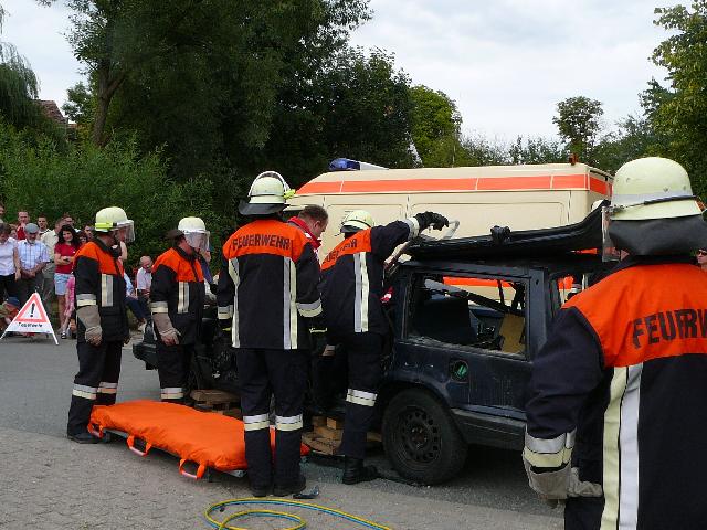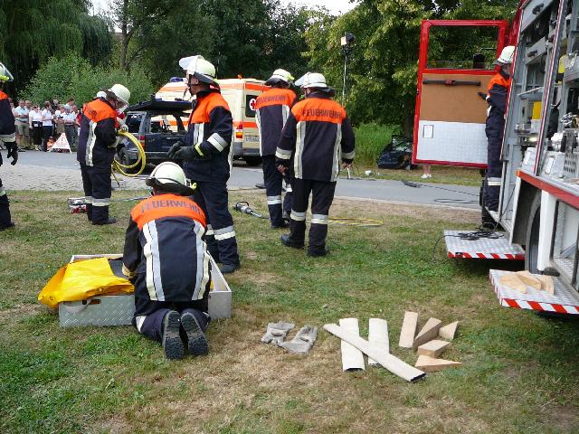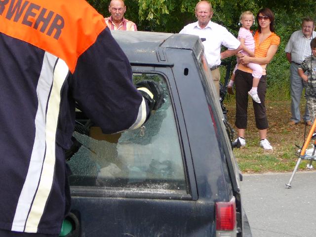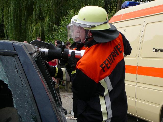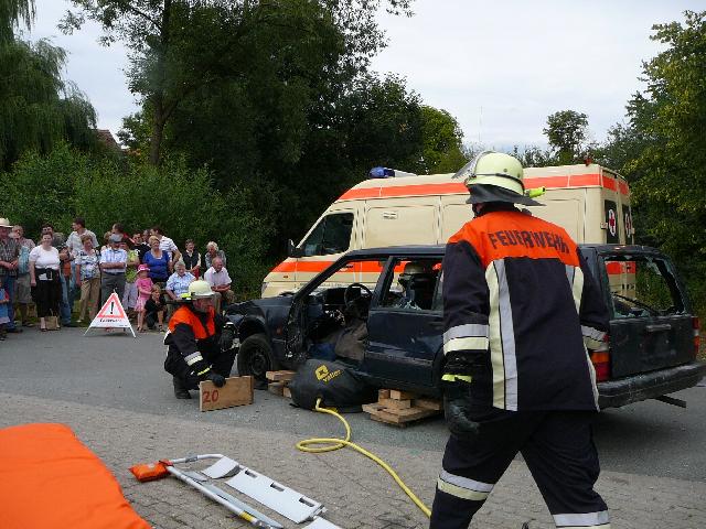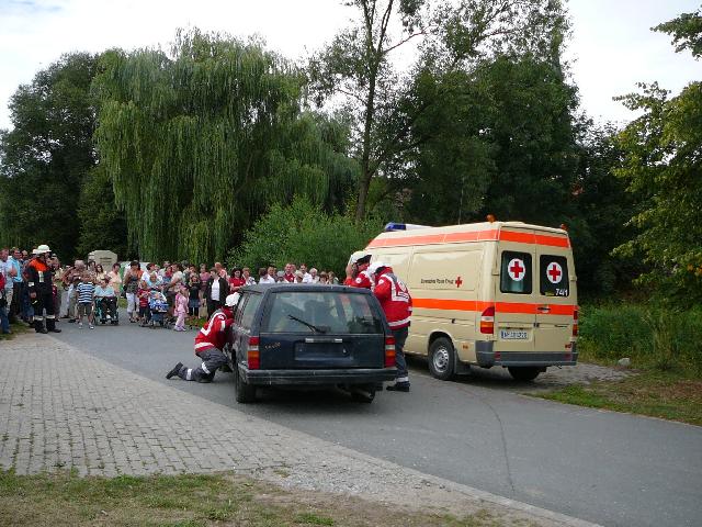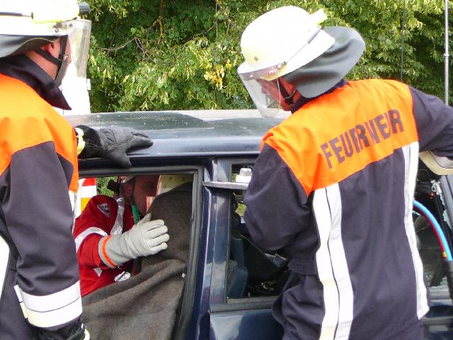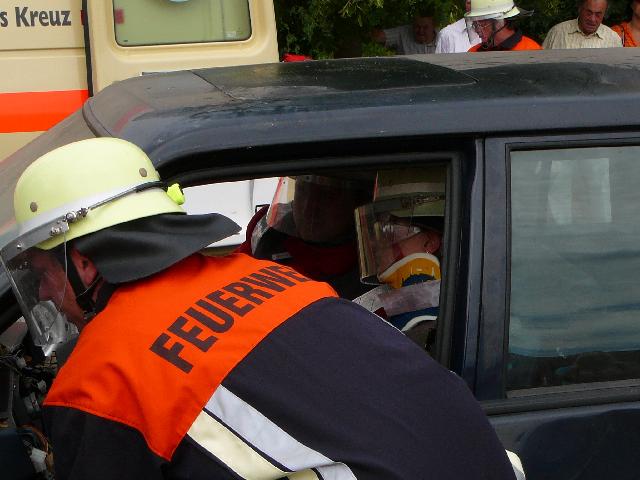Verkehrsunfall, 2 verletzte Personen, eine Person eingeklemmtEinsatzkräfte: Freiwillige Feuerwehr Markt Sugenheim, Freiwillige Feuerwehr Langenfeld, Schnelle Einsatzgruppe Rotes Kreuz (SEG)