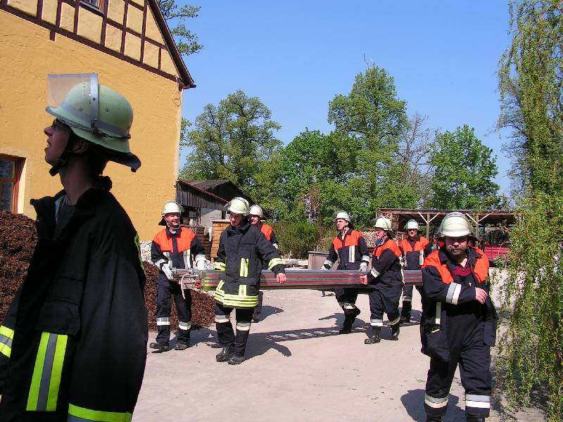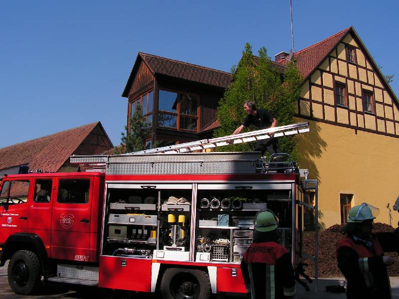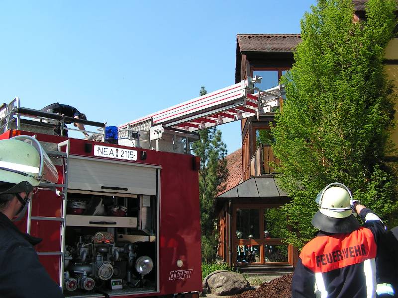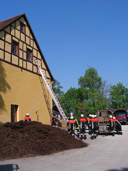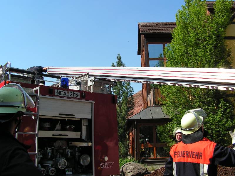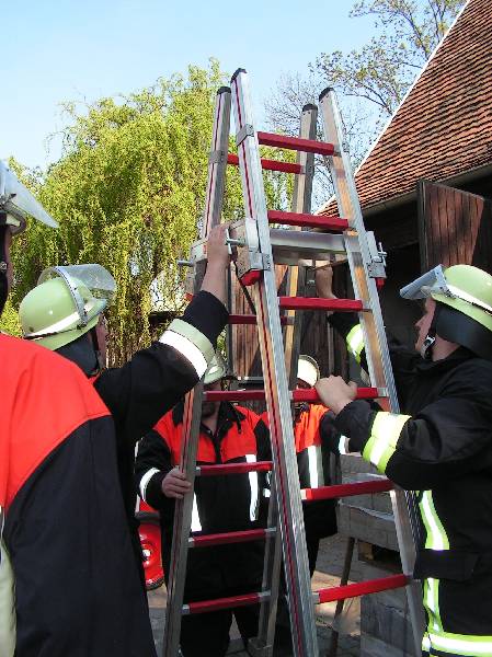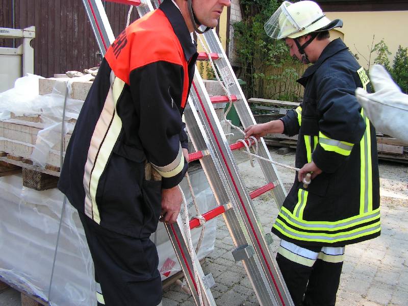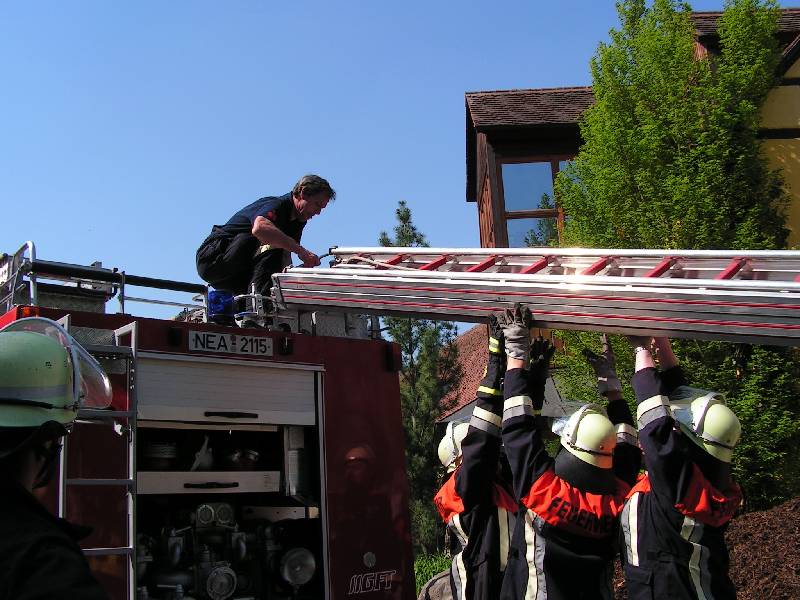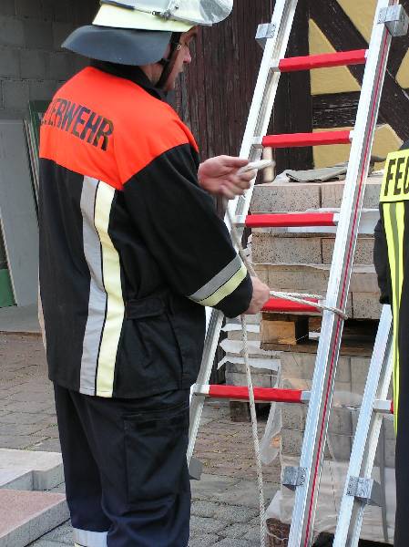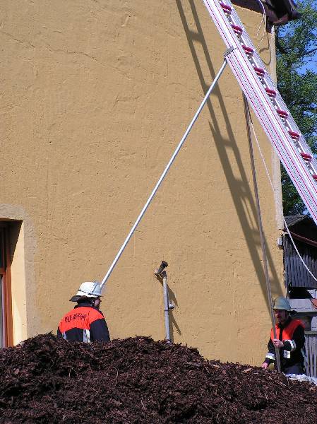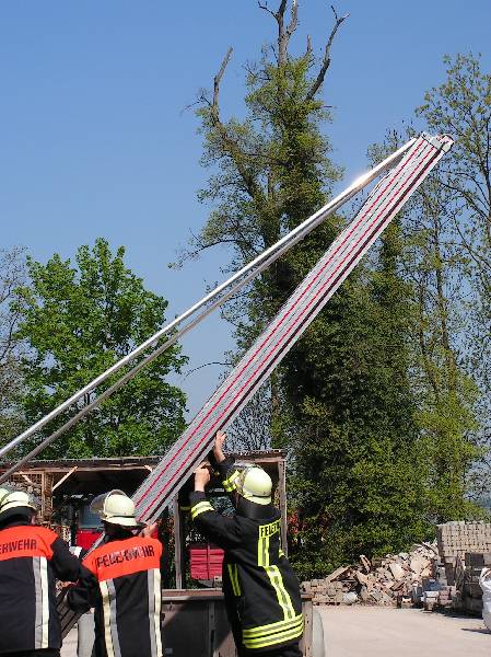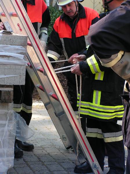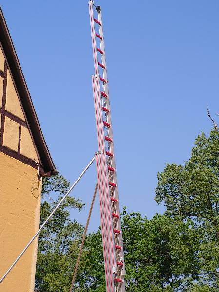 Normaler Löschangriff mit 3-teiliger Schiebeleiter in das Gebäude.
