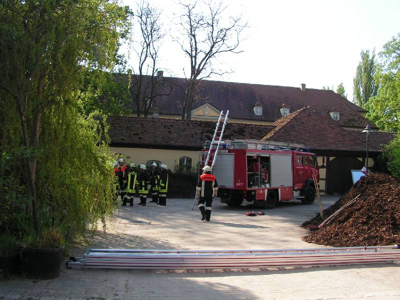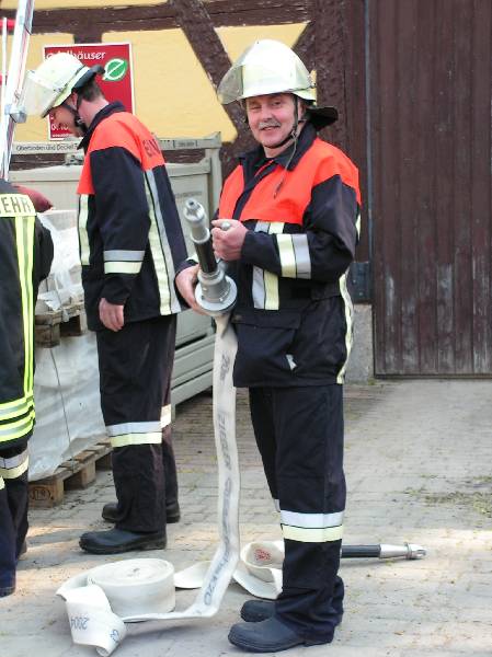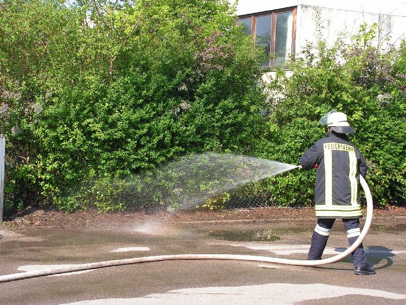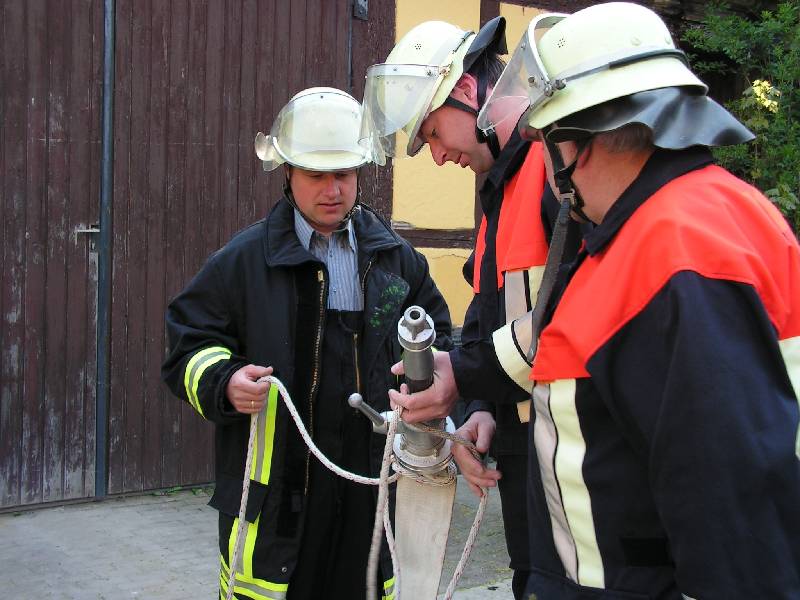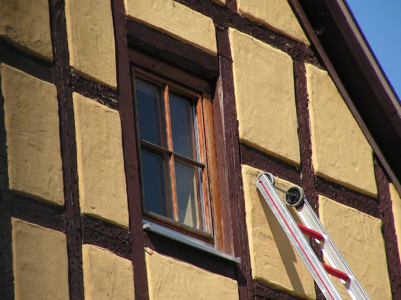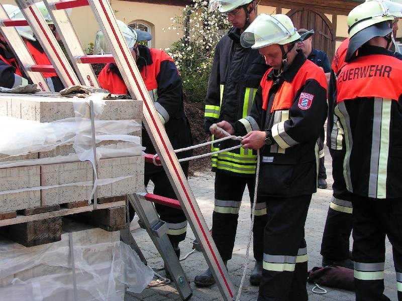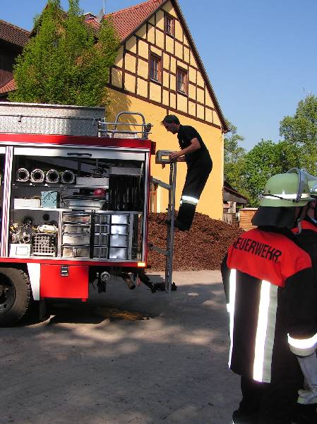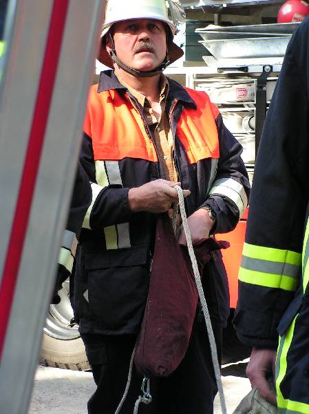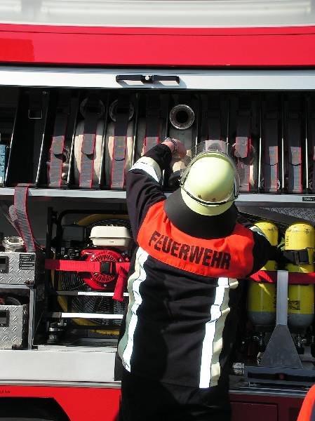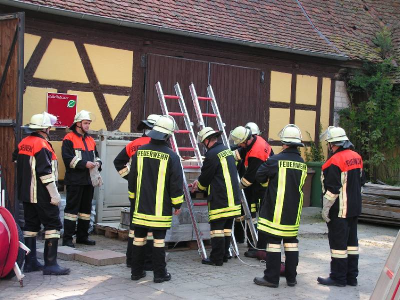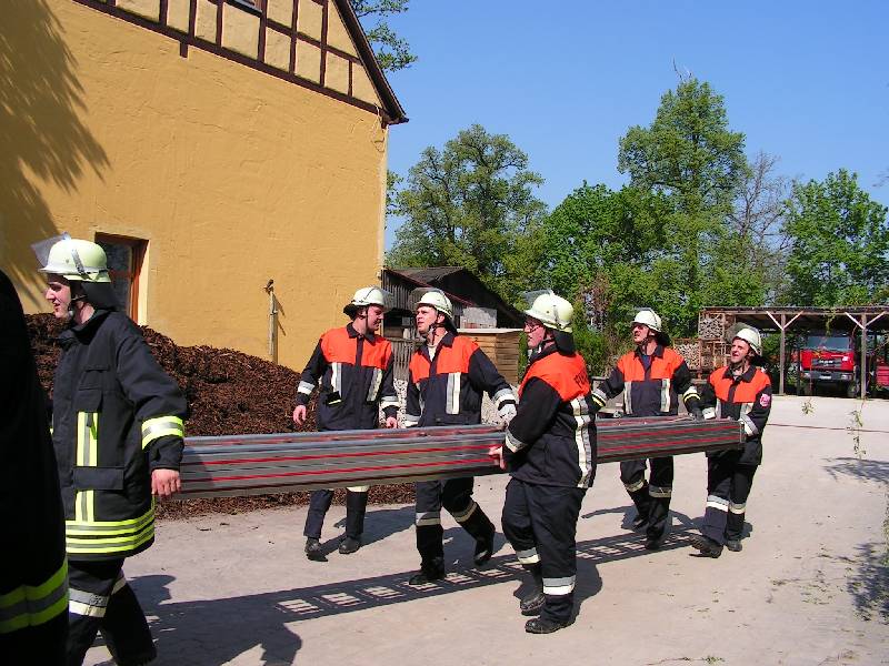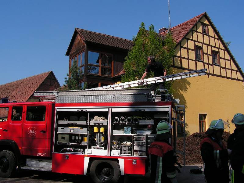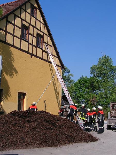 Normaler Löschangriff mit 3-teiliger Schiebeleiter in das Gebäude.