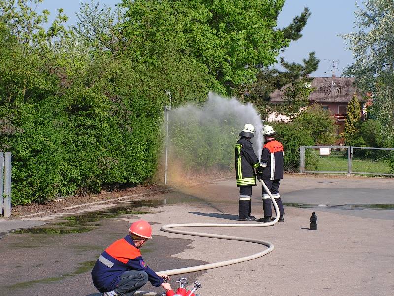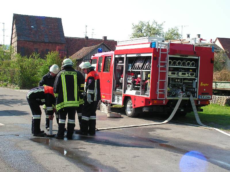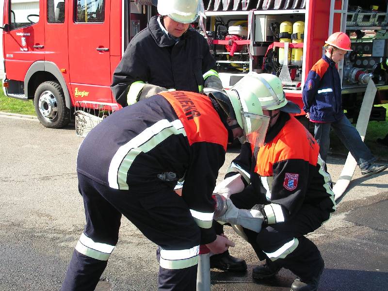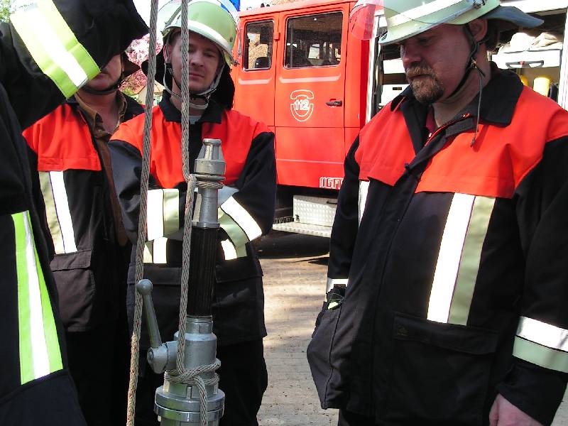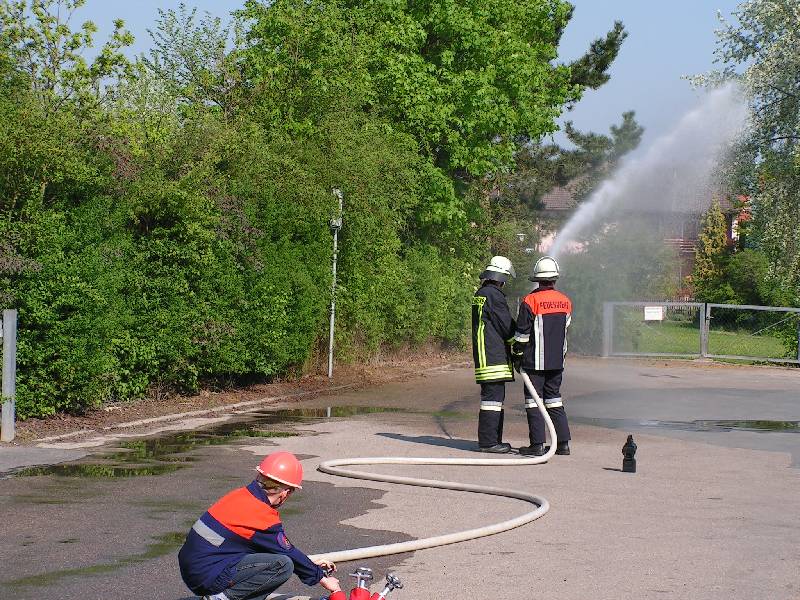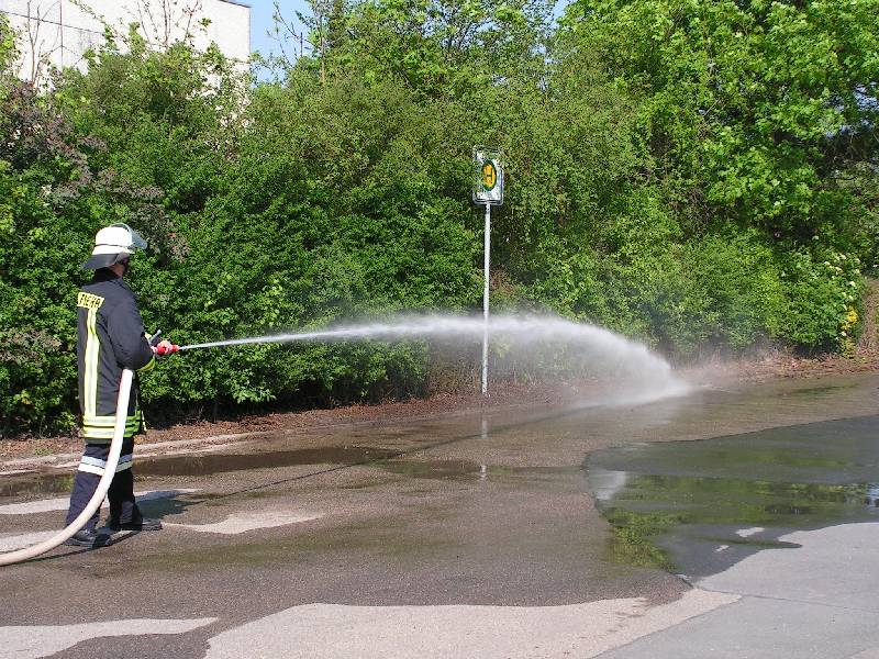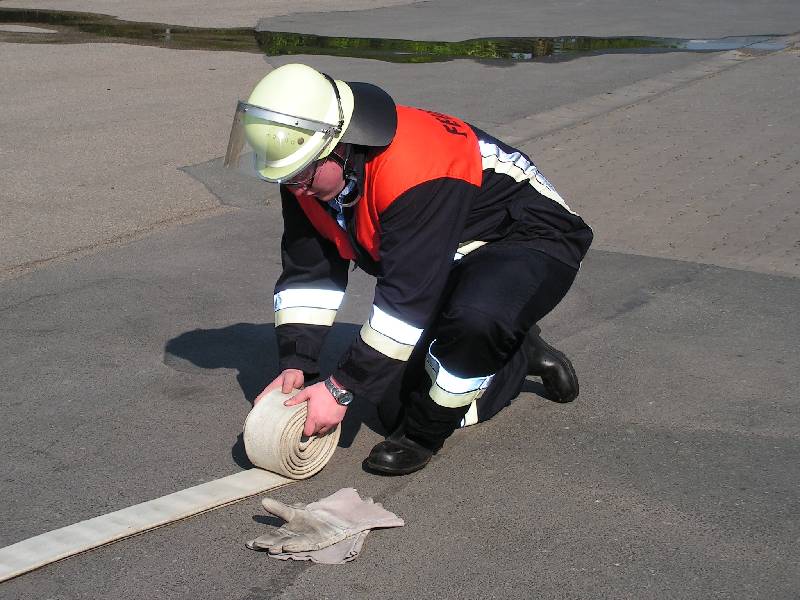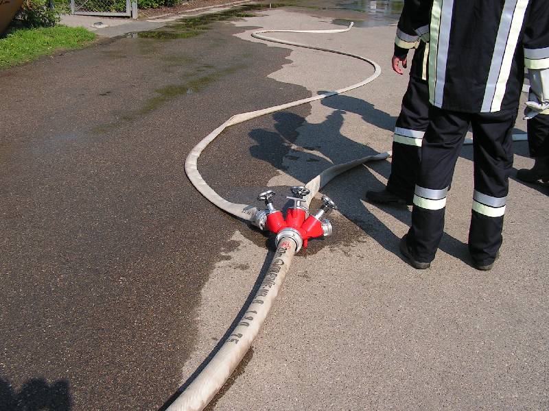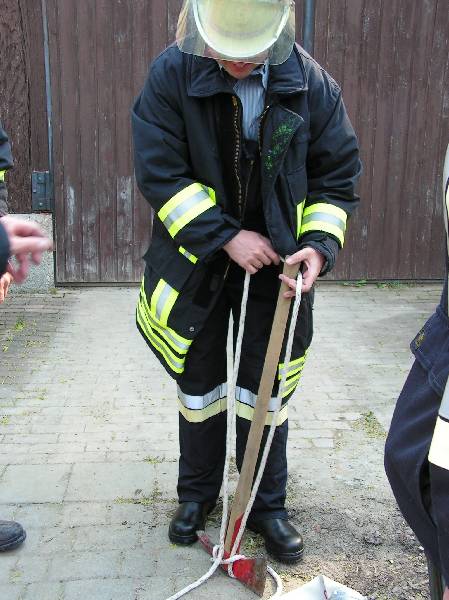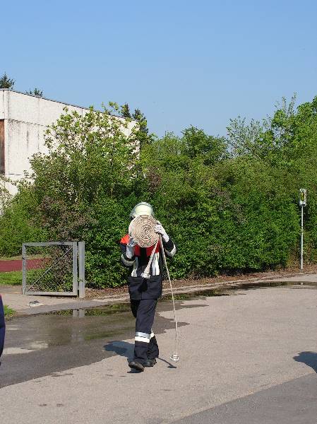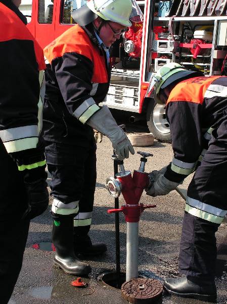 Normaler Löschangriff mit 3-teiliger Schiebeleiter in das Gebäude.