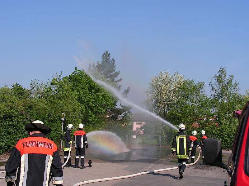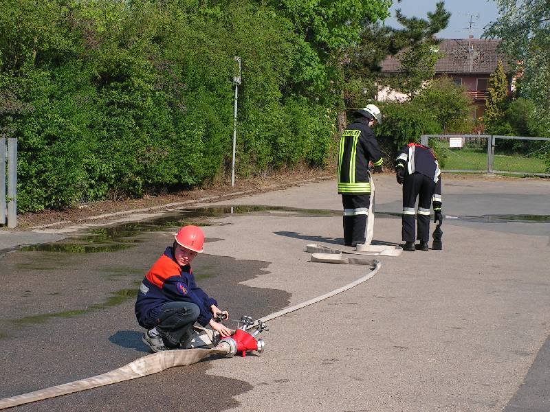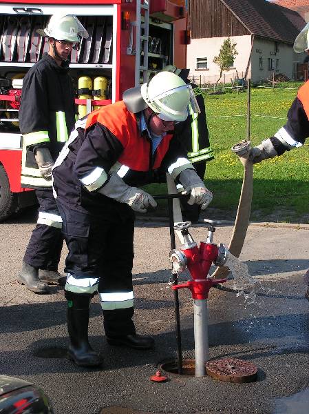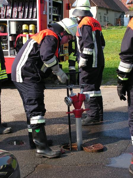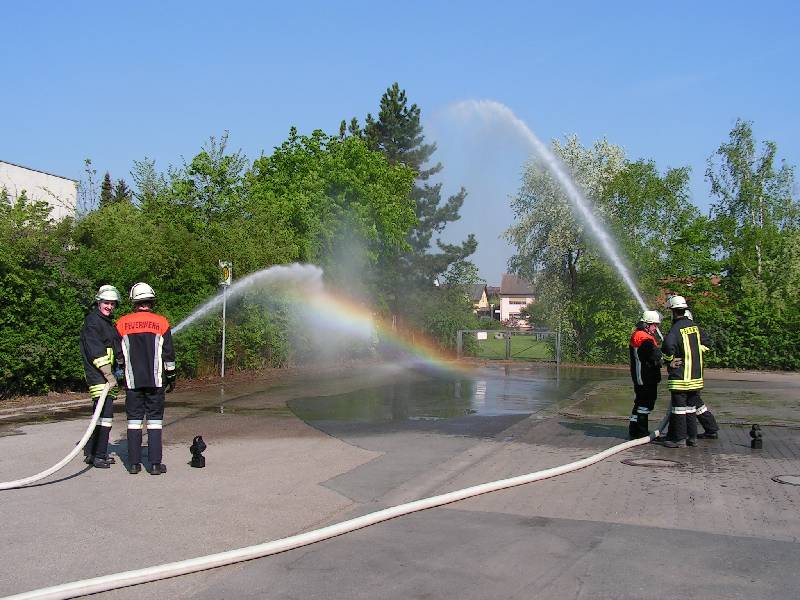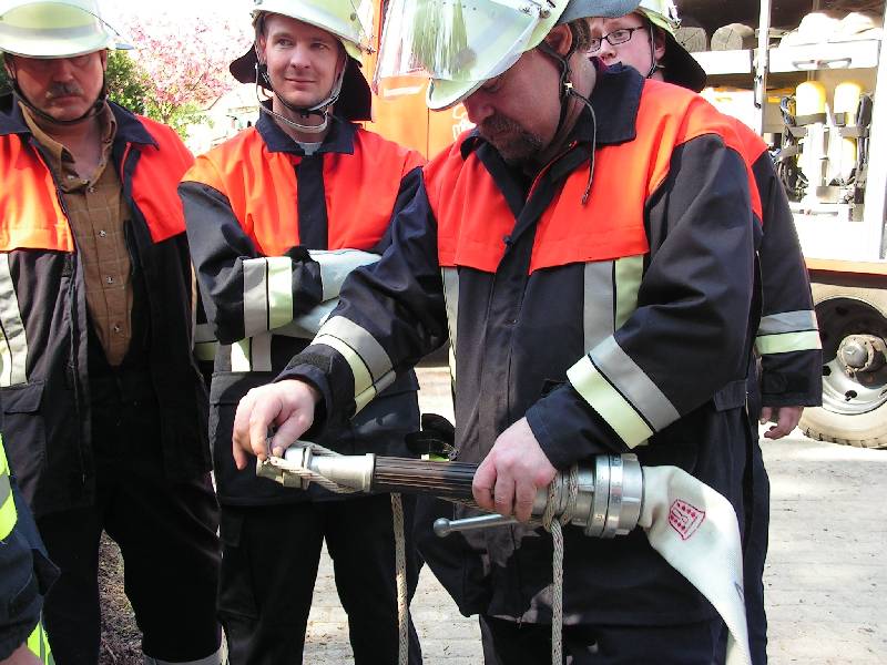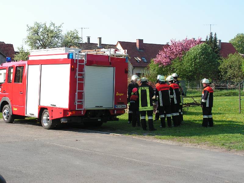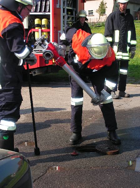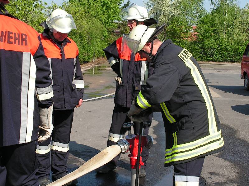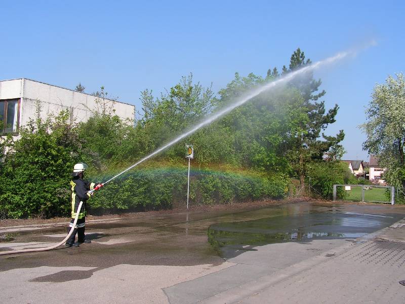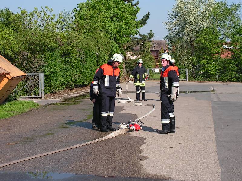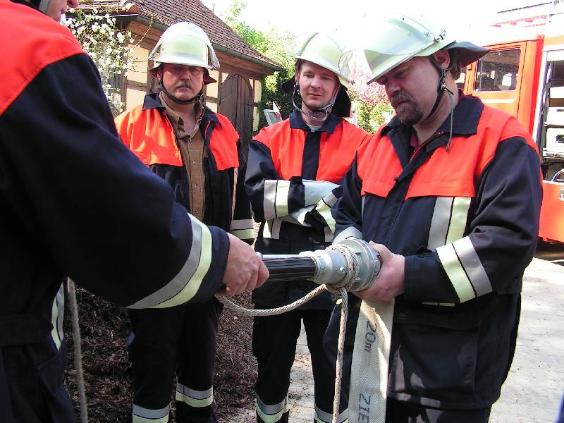 Normaler Löschangriff mit 3-teiliger Schiebeleiter in das Gebäude.