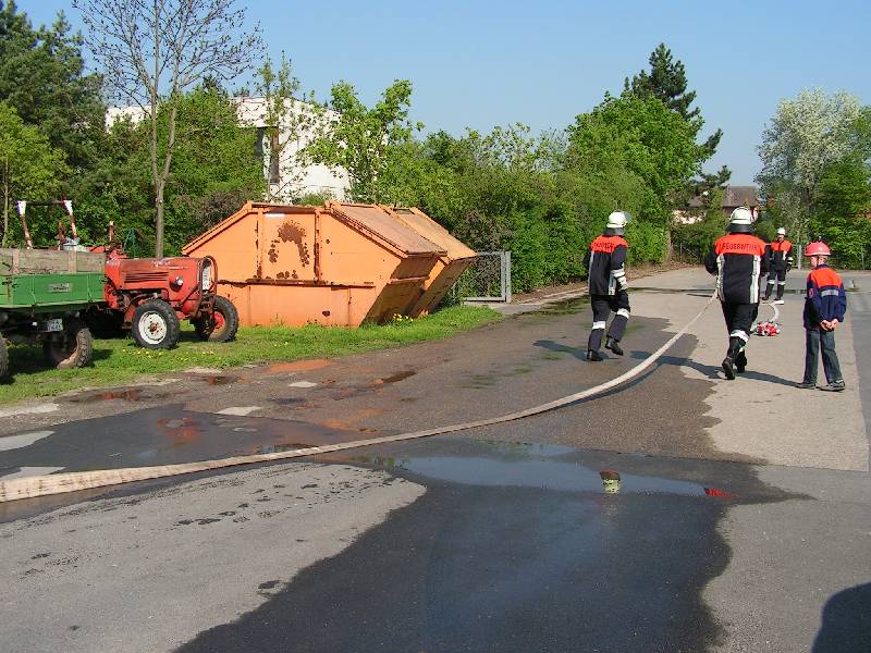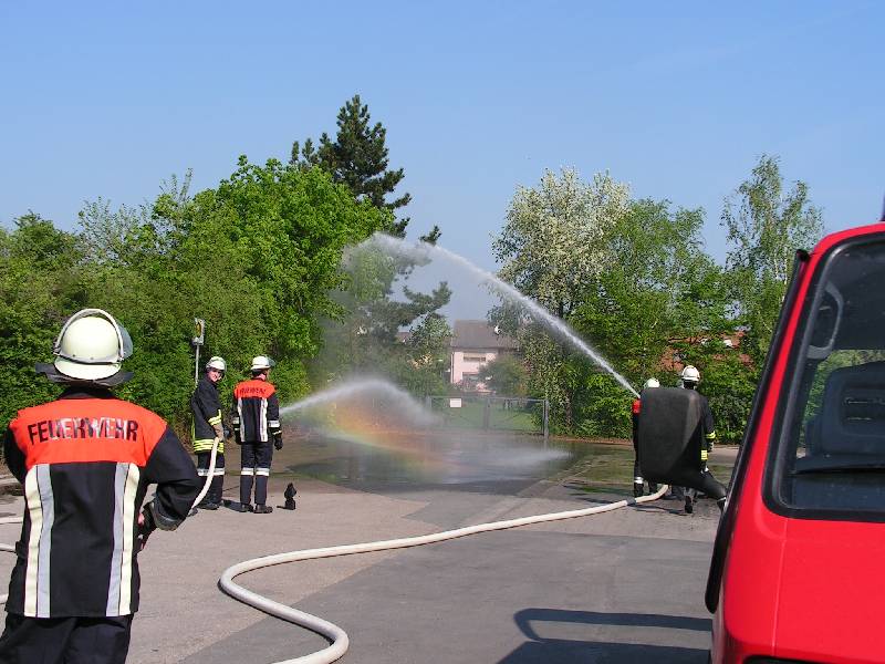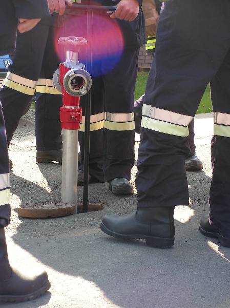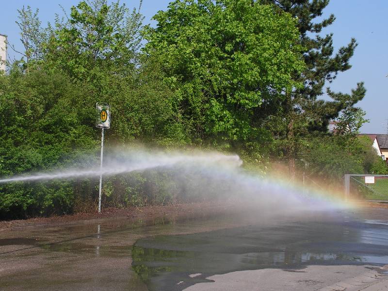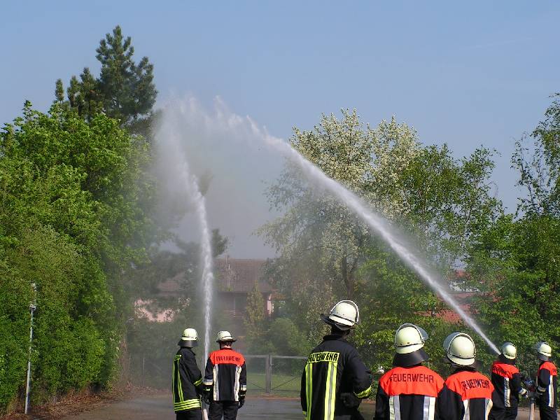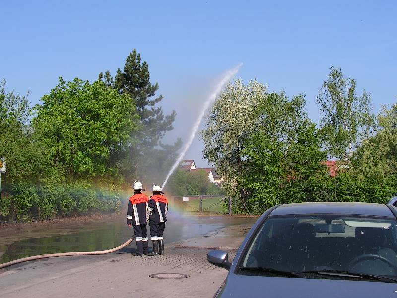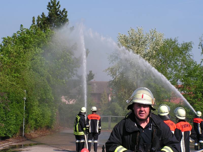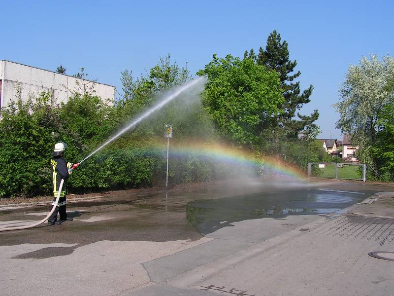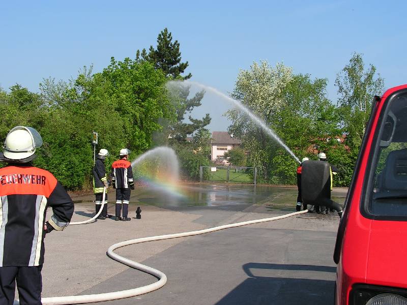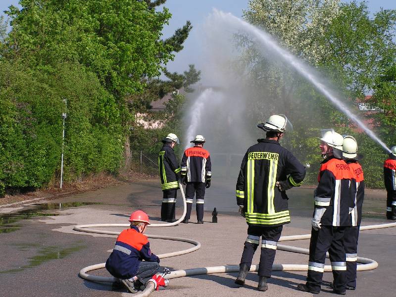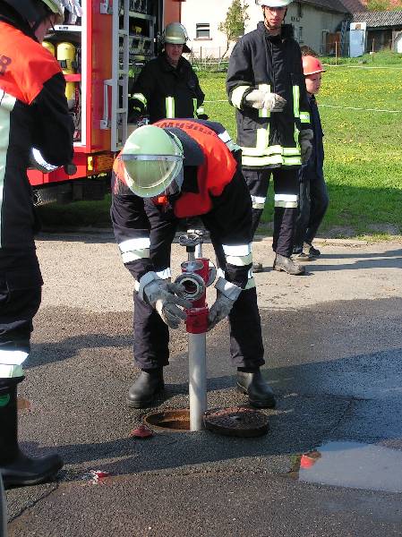 Normaler Löschangriff mit 3-teiliger Schiebeleiter in das Gebäude.