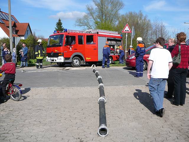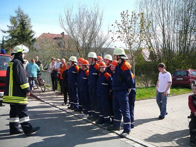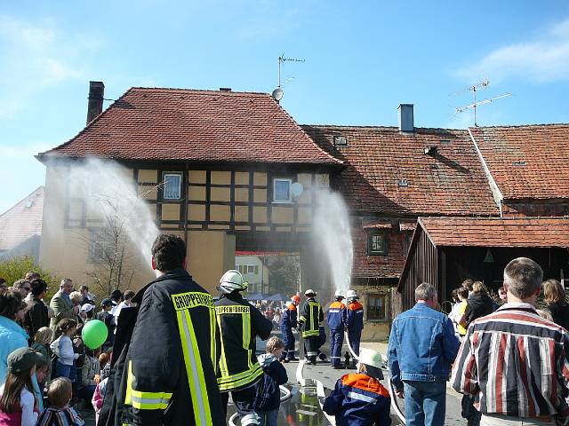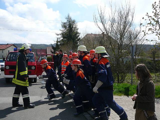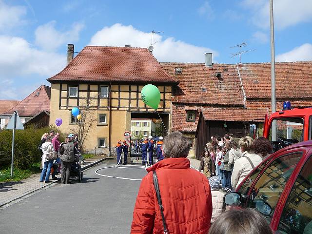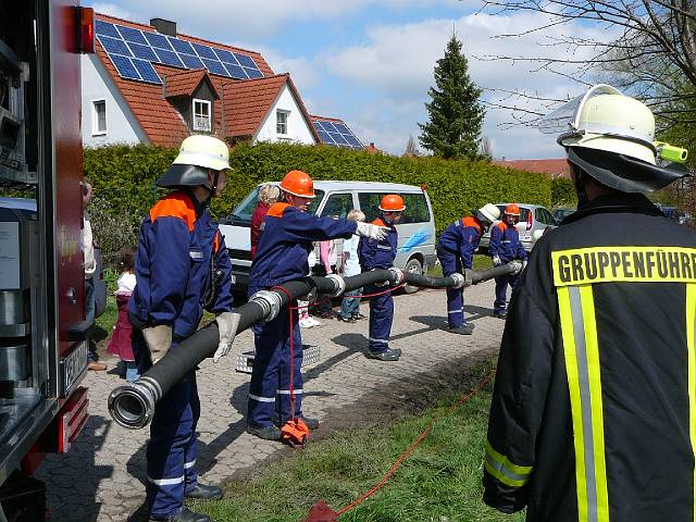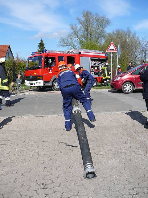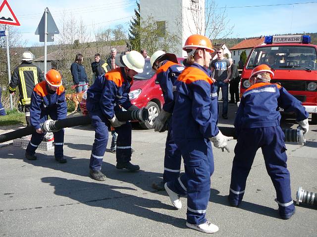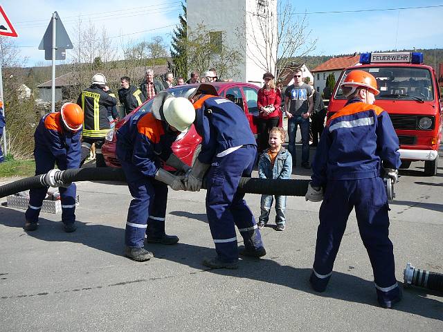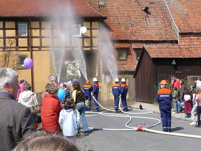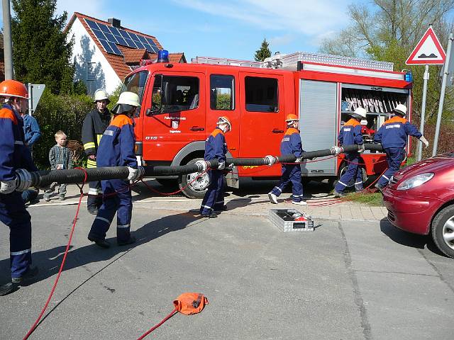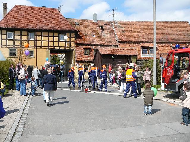 Schauübung 'Löschaufbau' der Jugendfeuerwehr auf dem Frühjahrsmarkt in Sugenheim