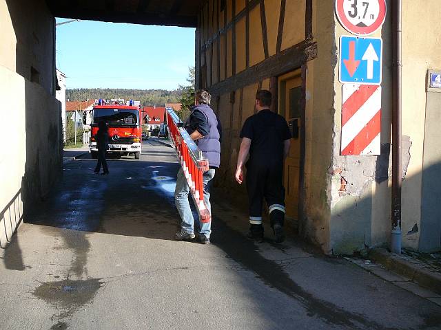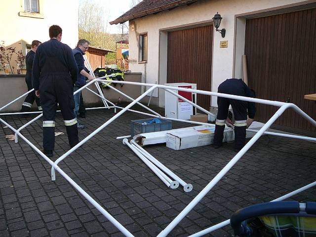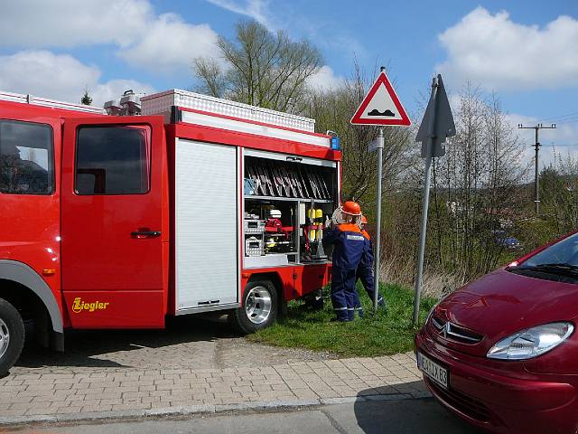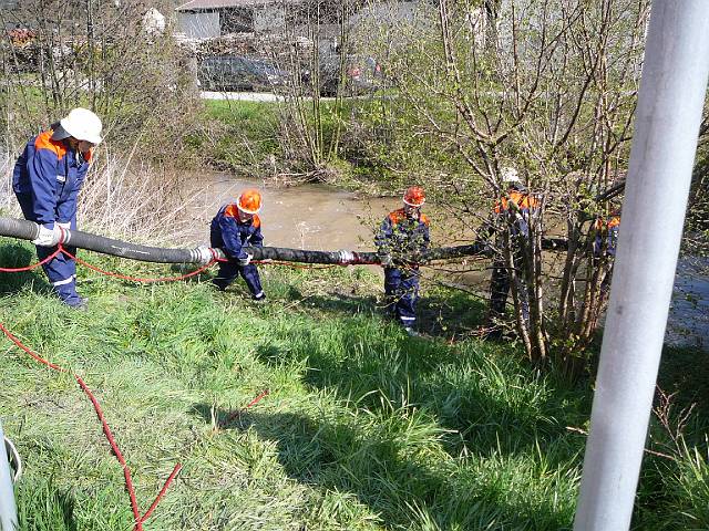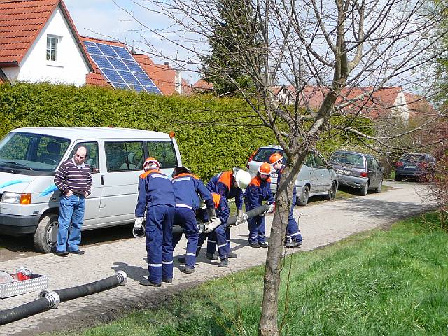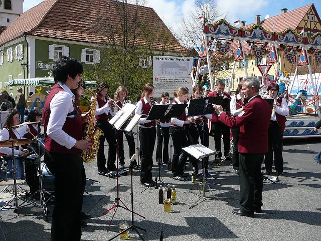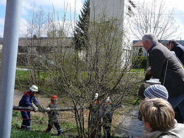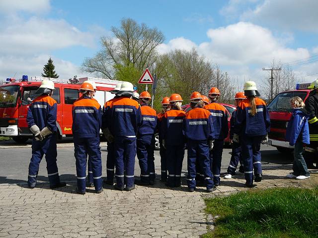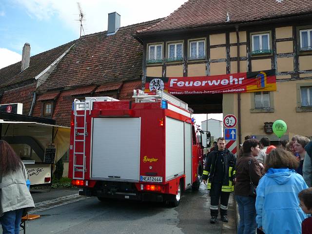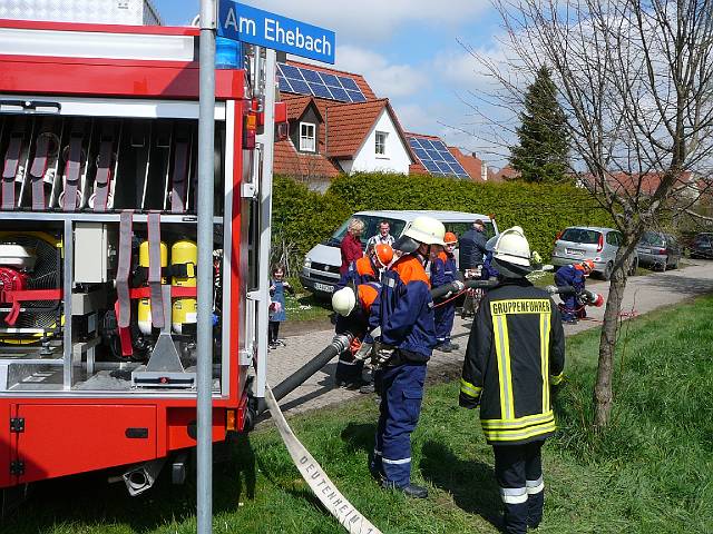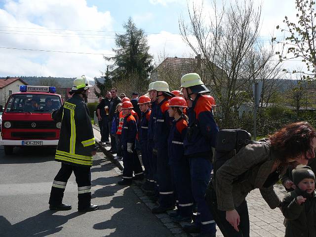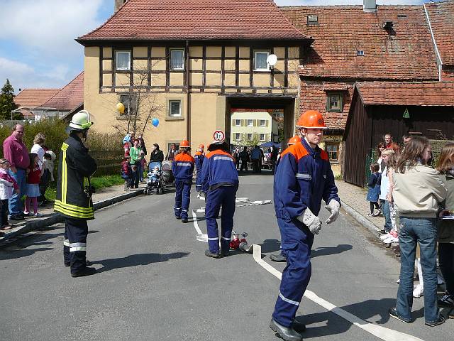 Schauübung 'Löschaufbau' der Jugendfeuerwehr auf dem Frühjahrsmarkt in Sugenheim