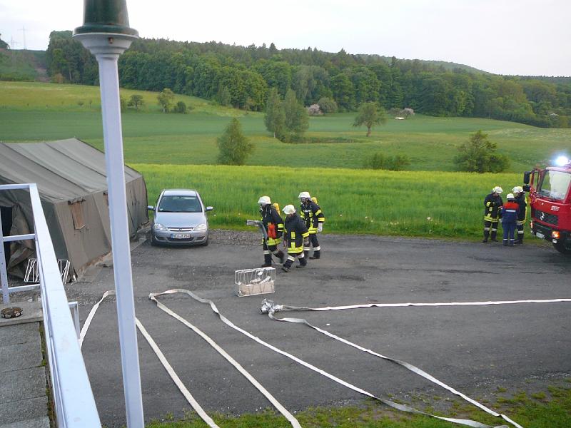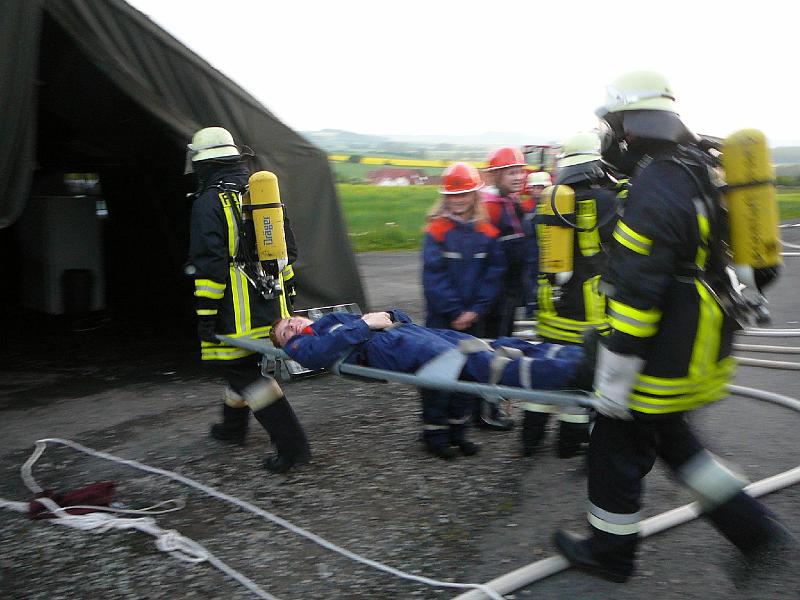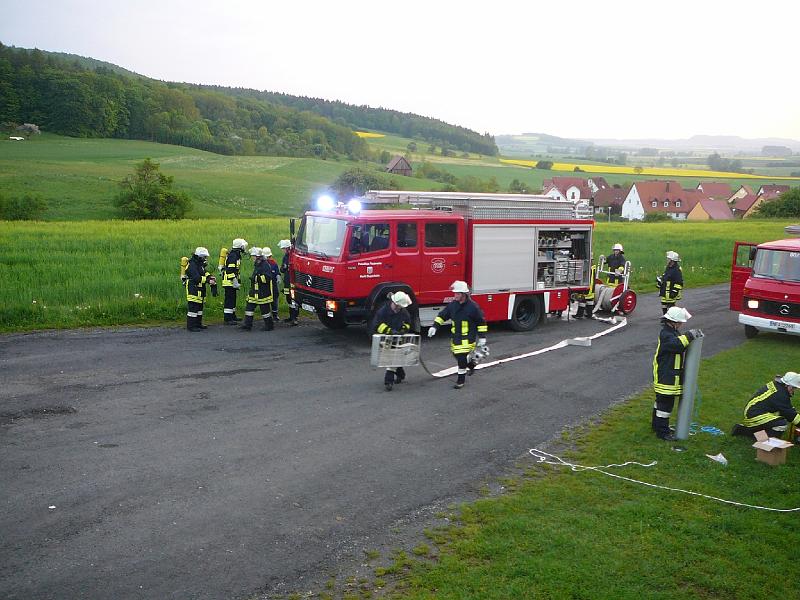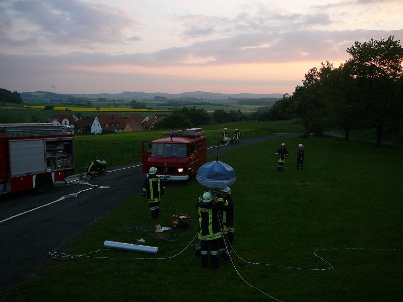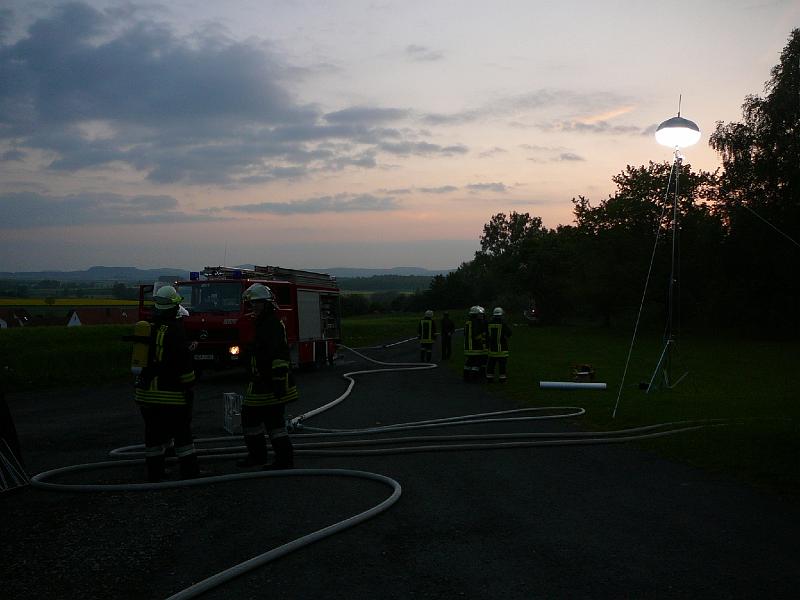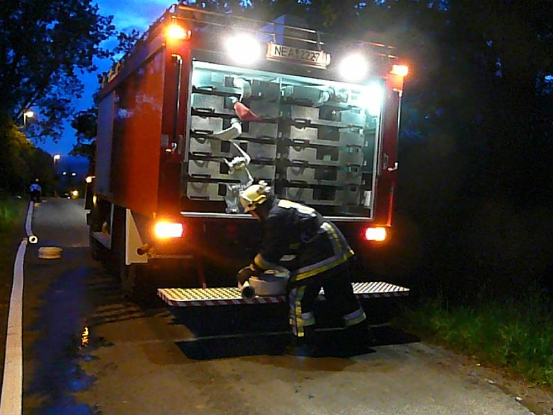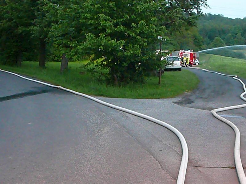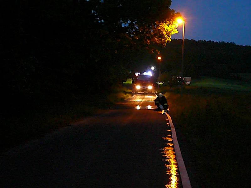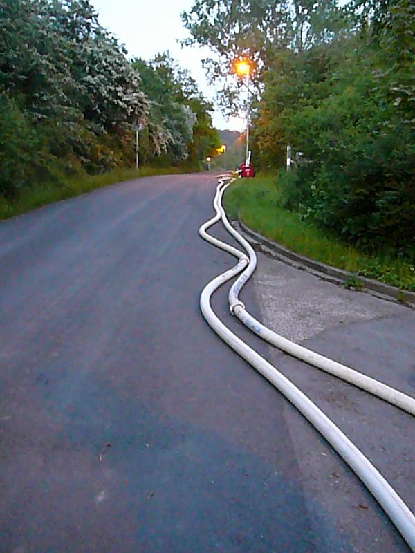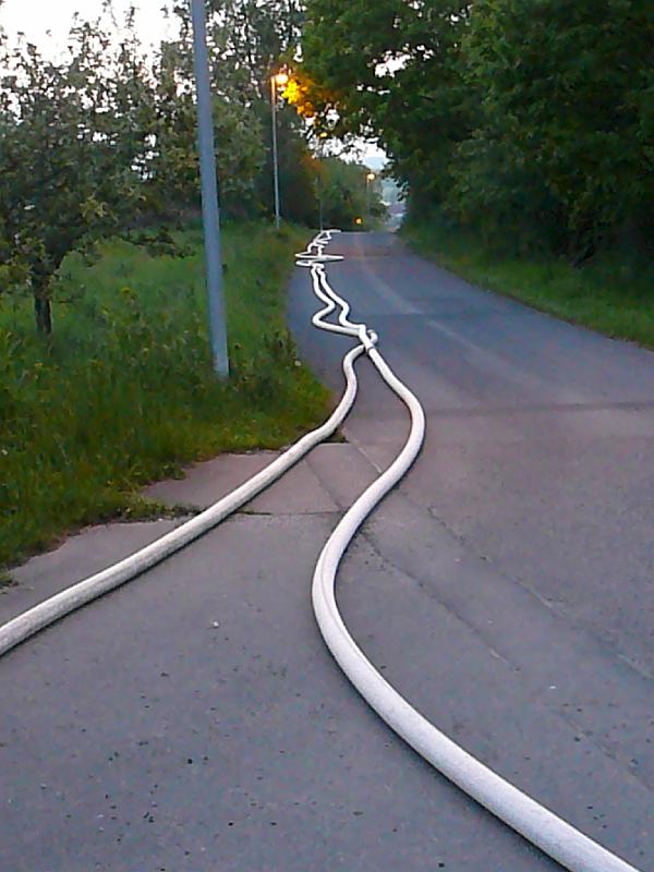 Wasserförderung über lange Schlauchstrecken mit VerkehrsabsicherungPersonenrettung unter Atemschutz