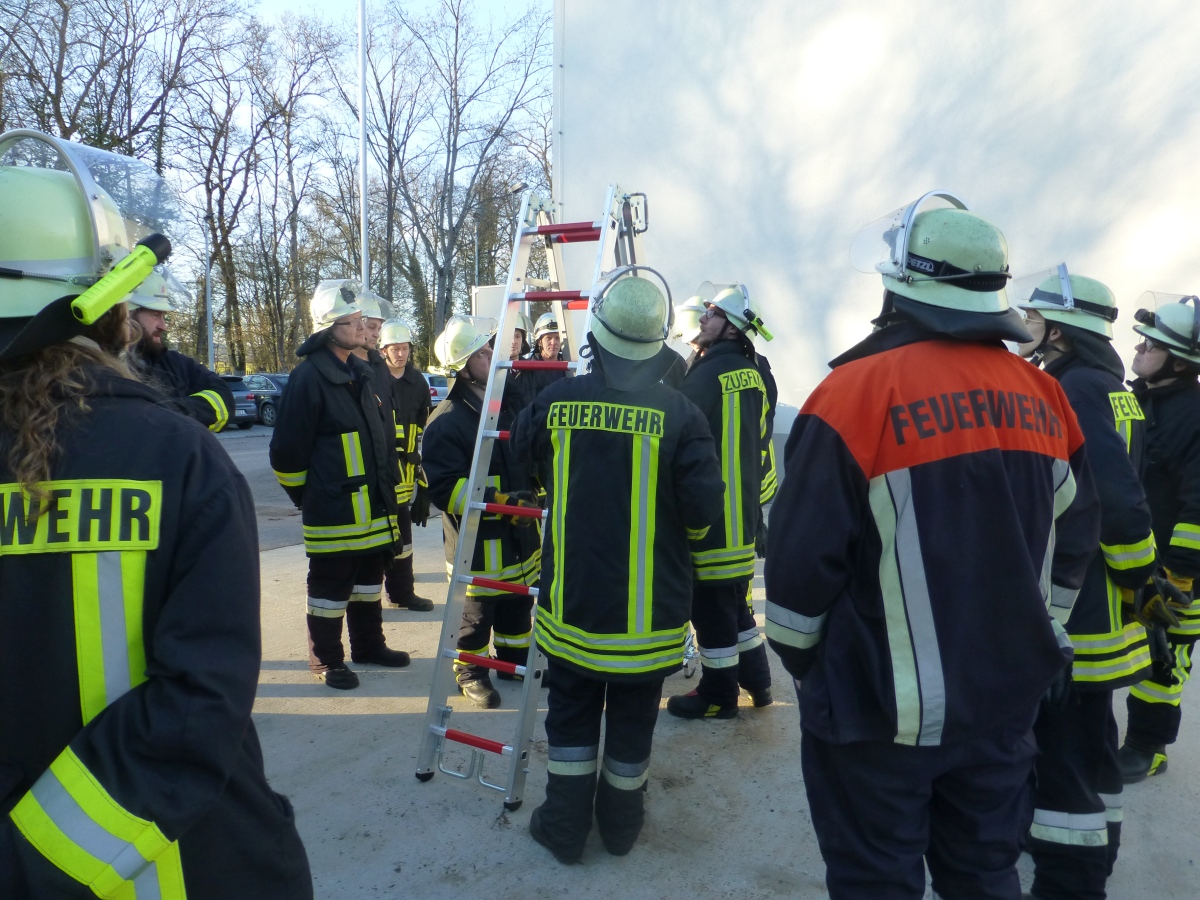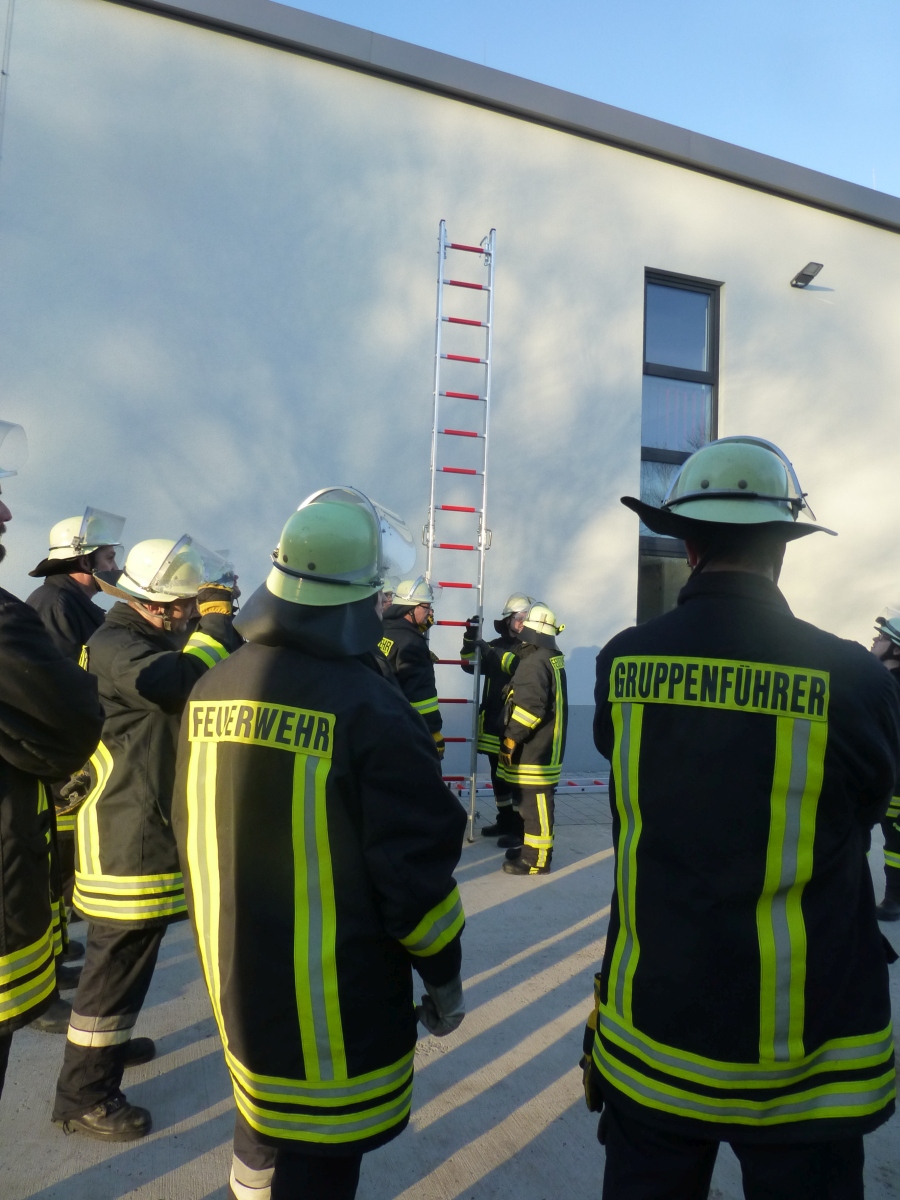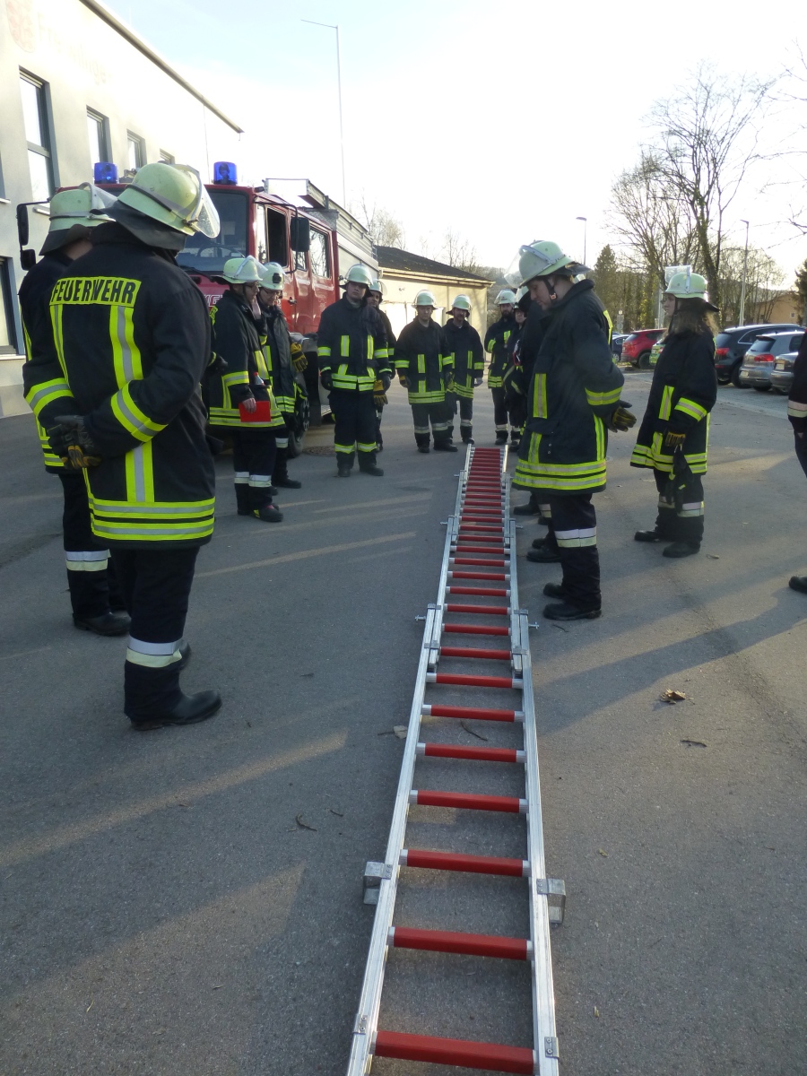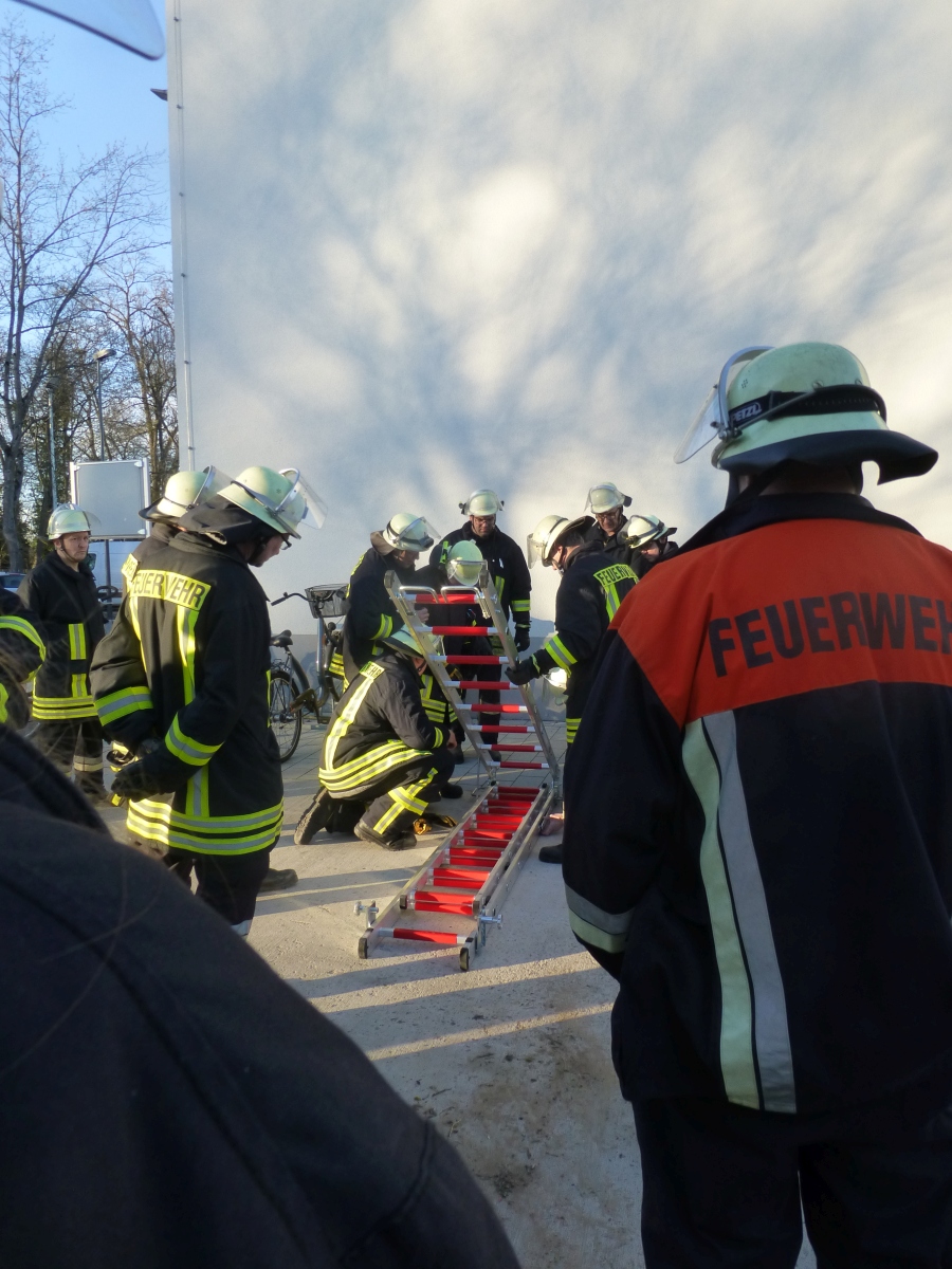 Geübt wurde der Umgang mit den verschiedenen Leitern und das Ausleuchten eines Hubschrauber Landeplatzes bei einer Nachtlandung.