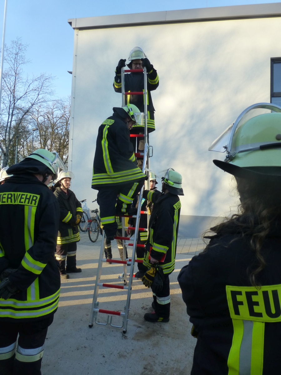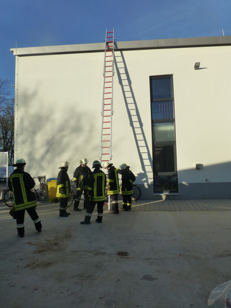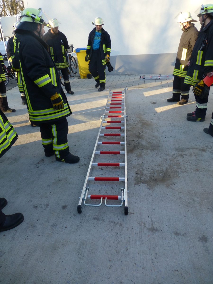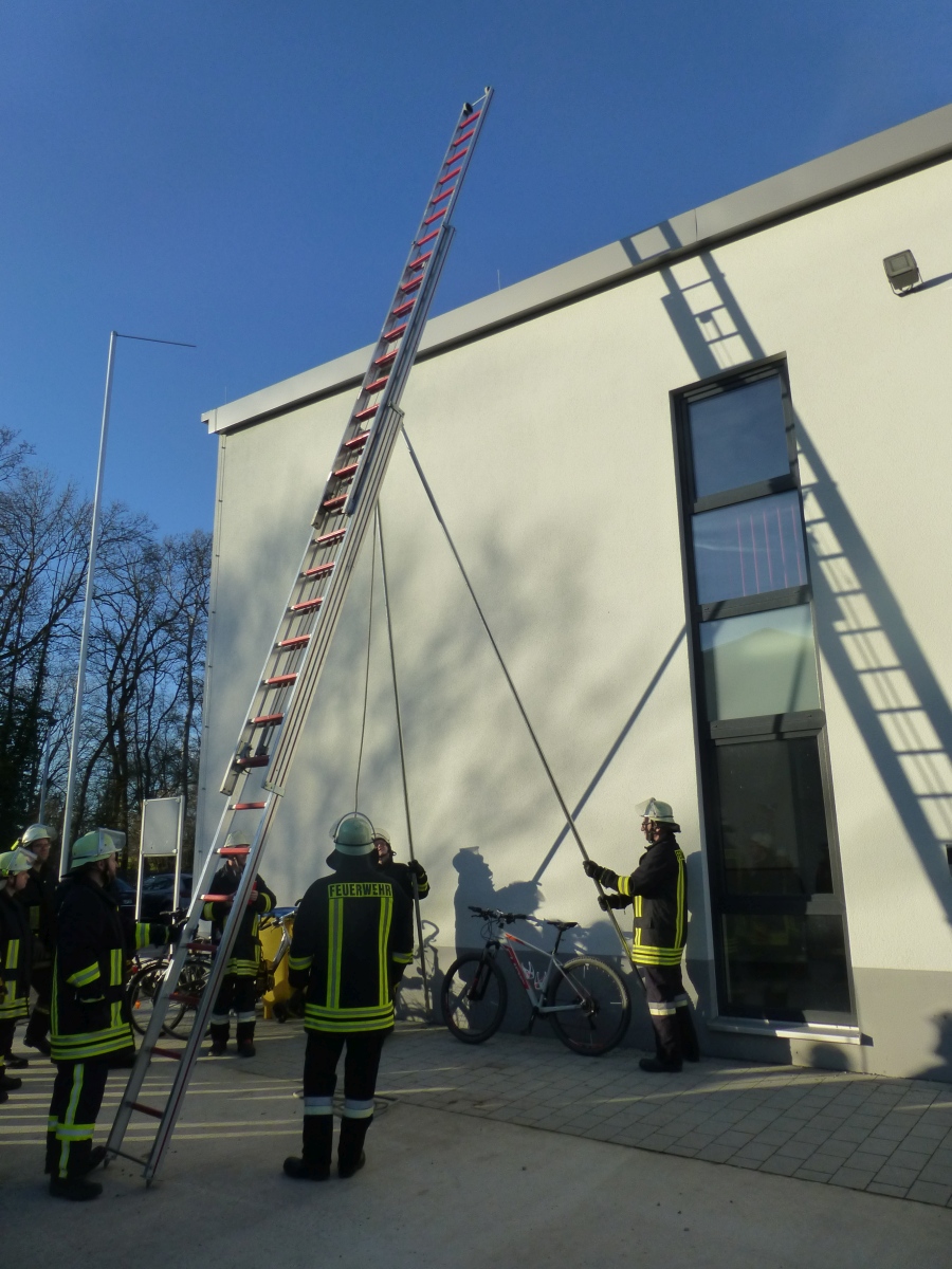 Geübt wurde der Umgang mit den verschiedenen Leitern und das Ausleuchten eines Hubschrauber Landeplatzes bei einer Nachtlandung.