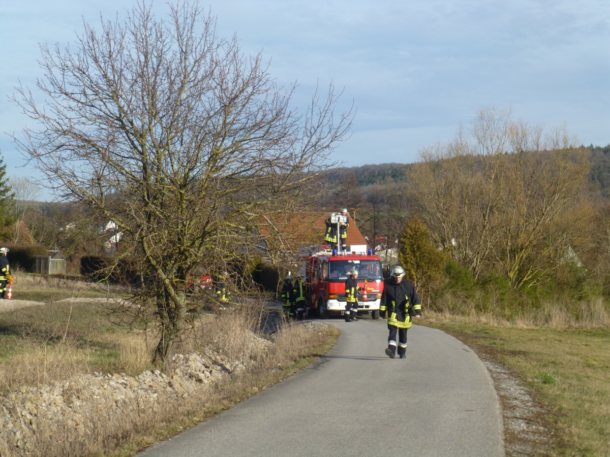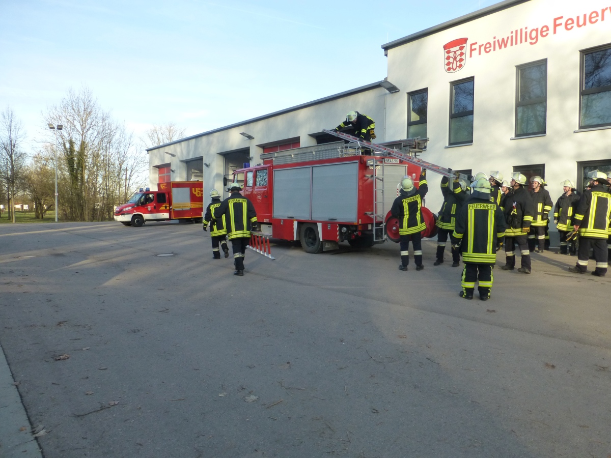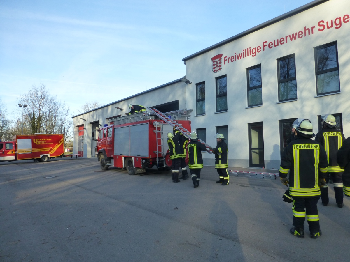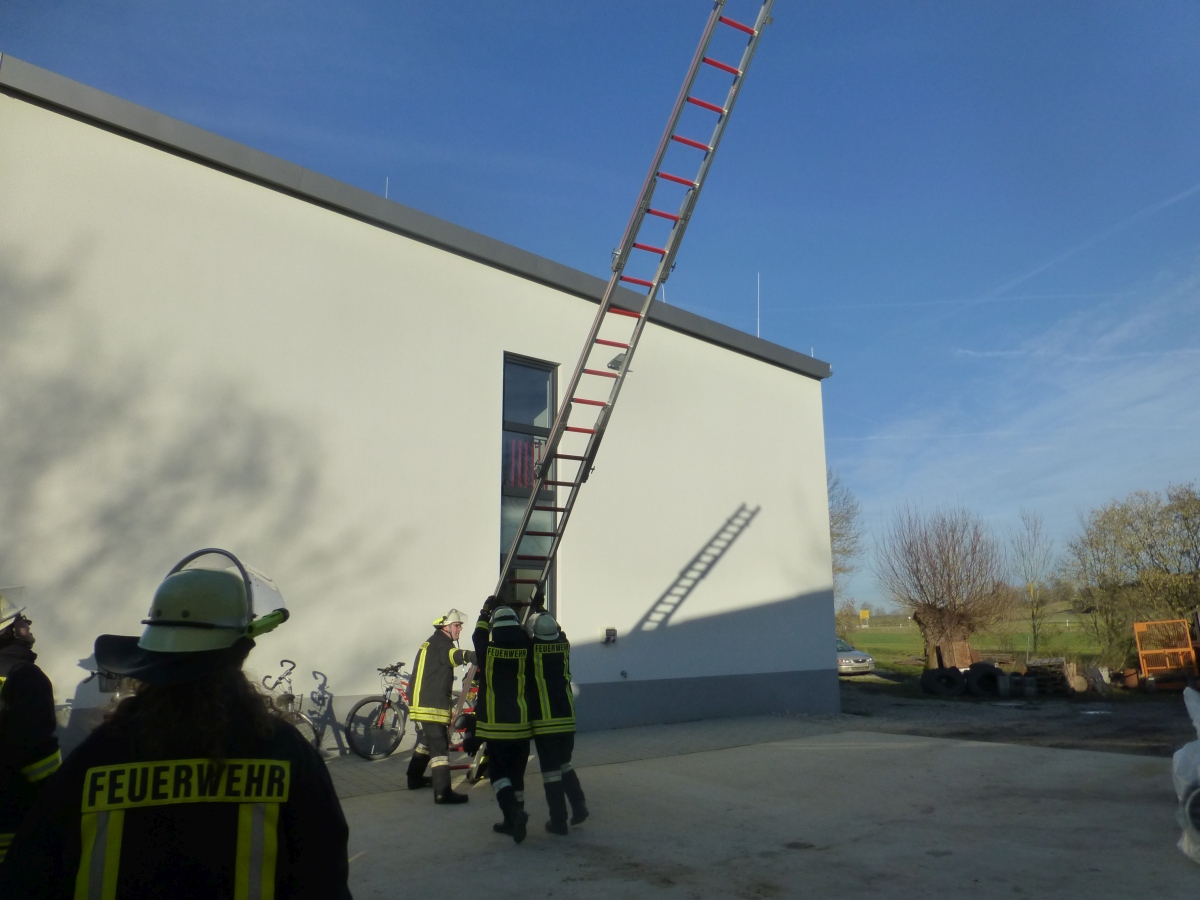 Geübt wurde der Umgang mit den verschiedenen Leitern und das Ausleuchten eines Hubschrauber Landeplatzes bei einer Nachtlandung.