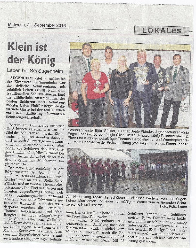 Kirchweih - Vereinsschießen 2016 gewonnen